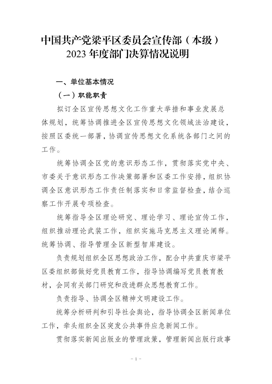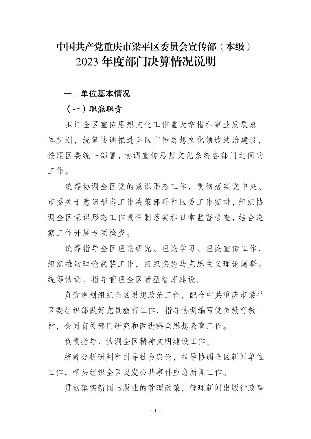 標(biāo)題 中國(guó)共產(chǎn)黨重慶市梁平區(qū)委員會(huì)宣傳部(本級(jí))2023年度決算公開(kāi)說(shuō)明