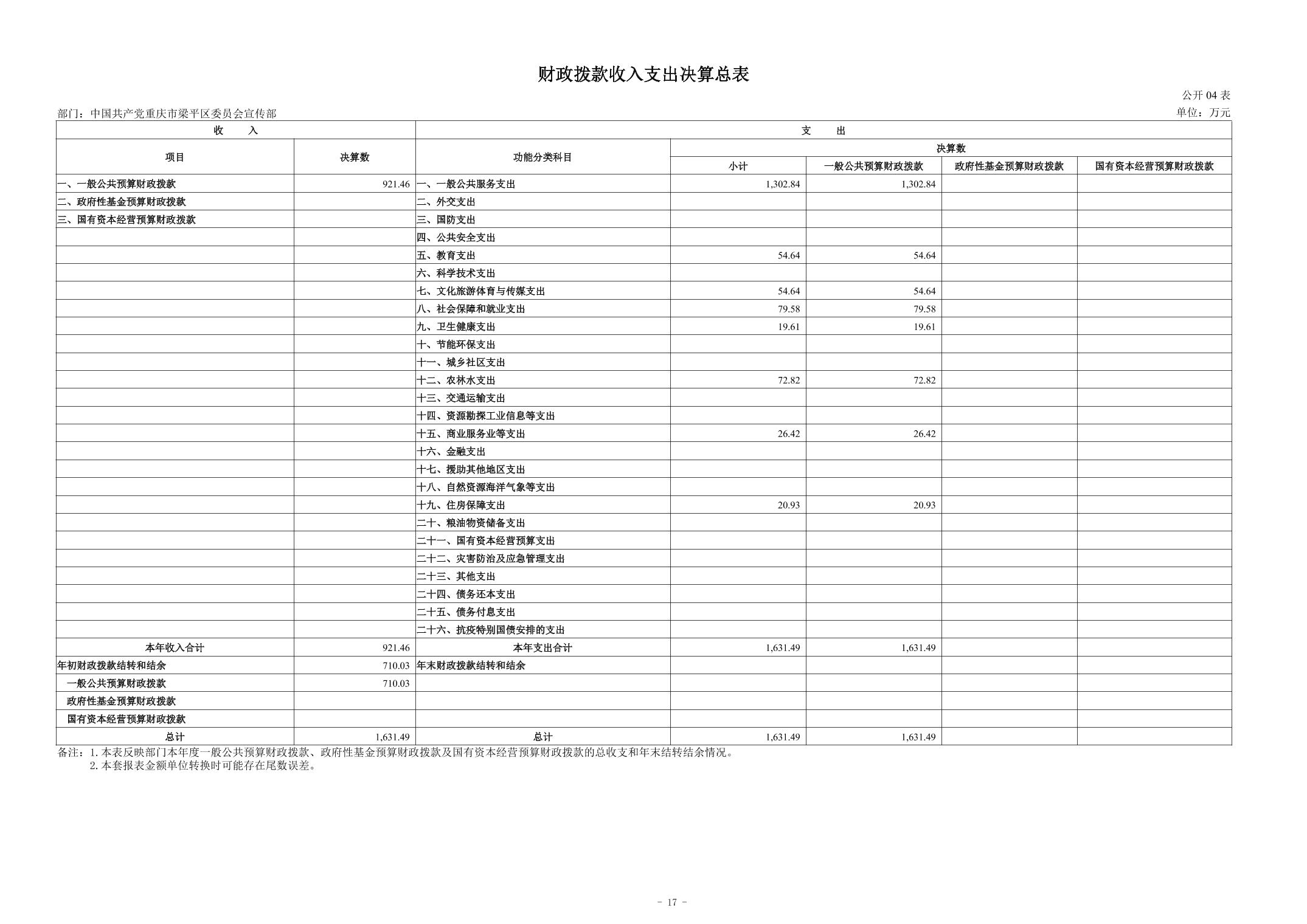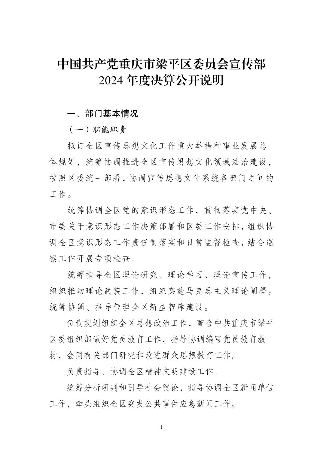 | 標題 | 中國共產黨重慶市梁平區委員會宣傳部 2024 年度決算公開說明 |