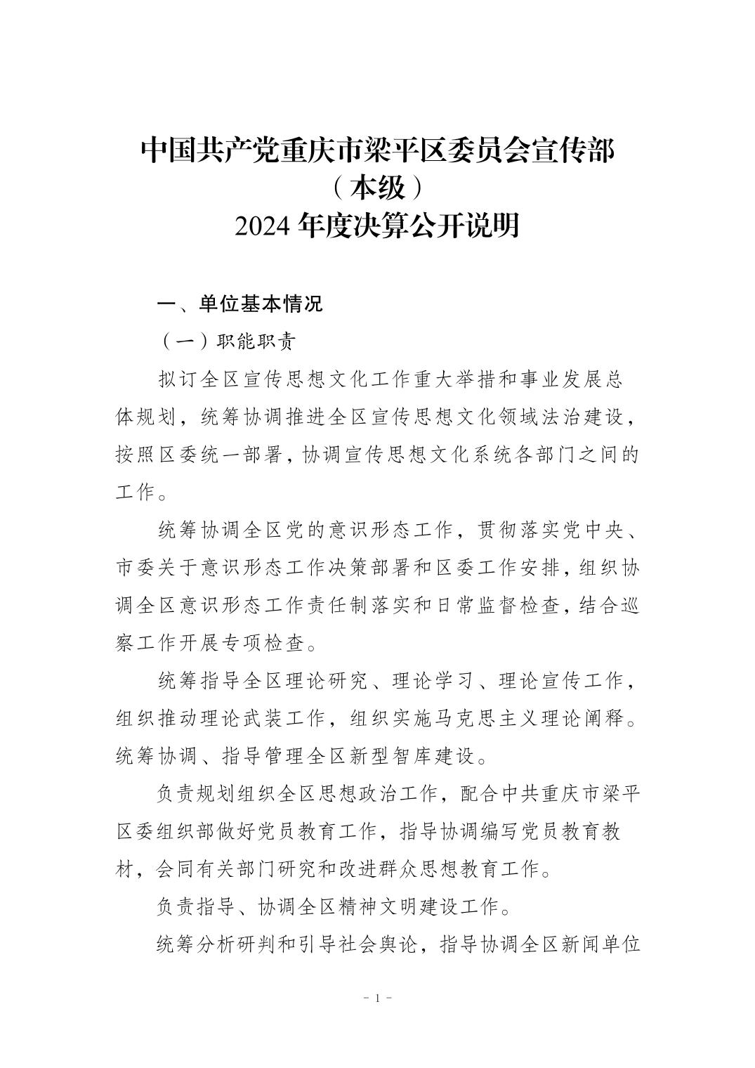 | 標題 | 中國共產黨重慶市梁平區委員會宣傳部 (本級) 2024 年度決算公開說明 |