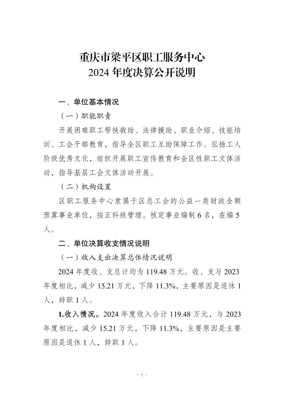標題 重慶市梁平區職工服務中心 2024 年度決算公開說明