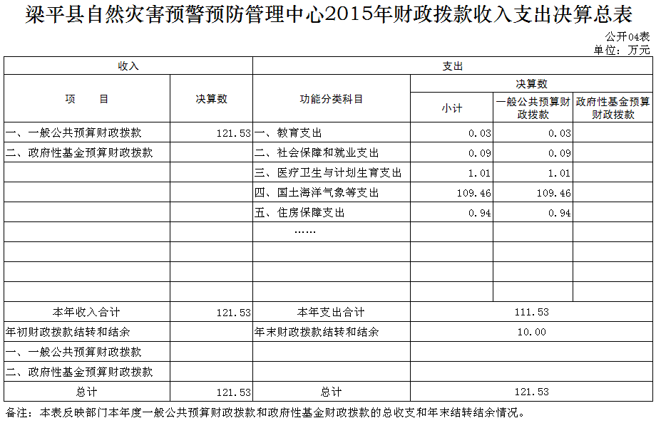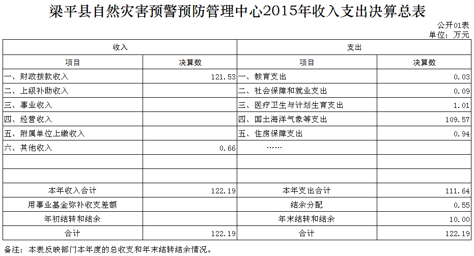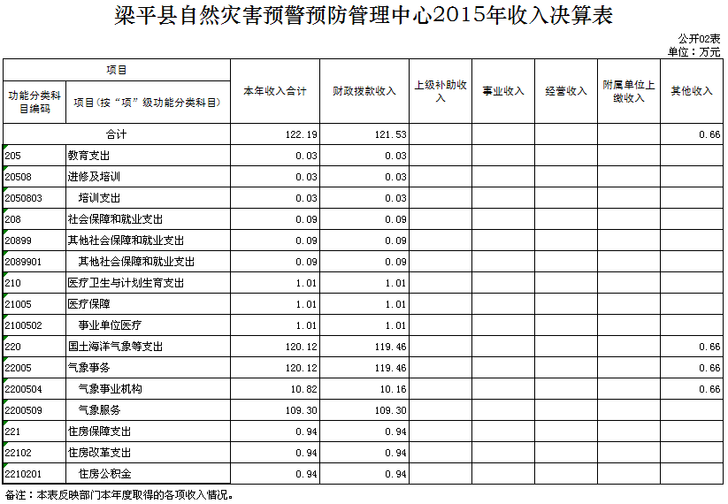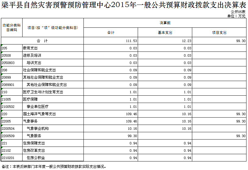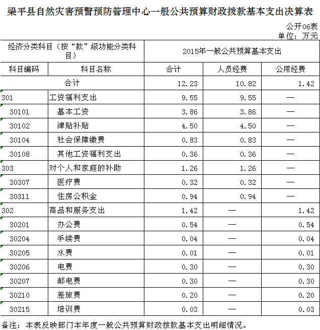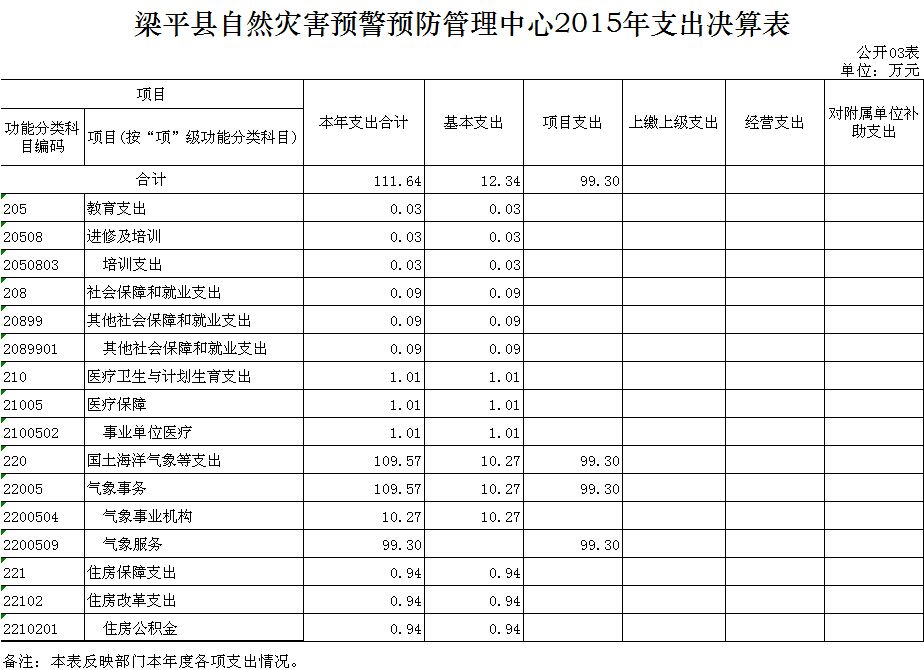 | 標題 | 梁平縣自然災害預警預防管理中心2015年部門決算情況說明 |
