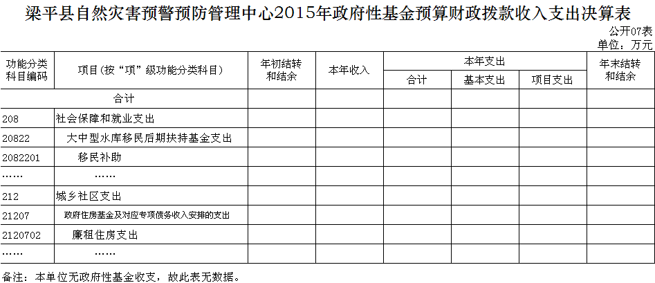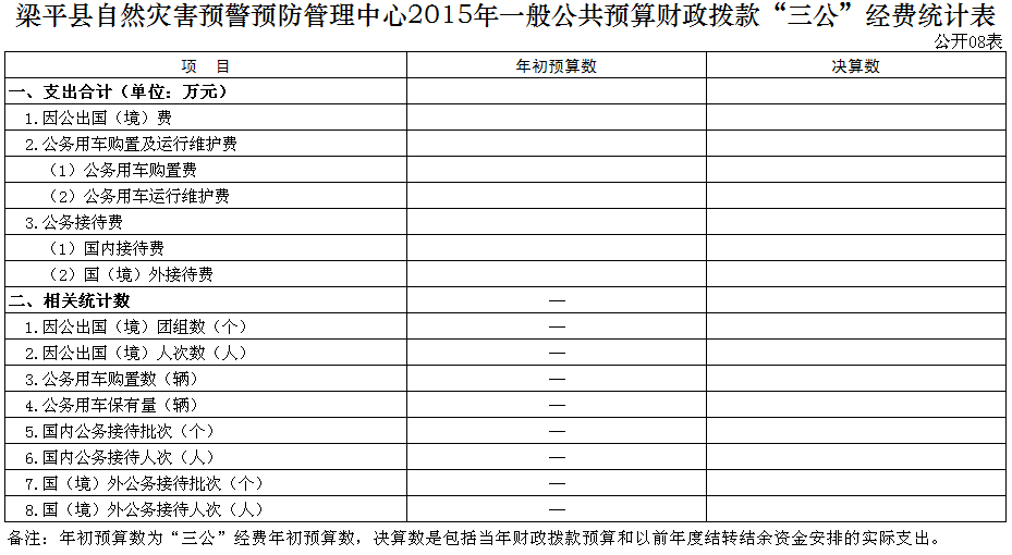 2015年梁平縣自然災害預警預防管理中心無“三公”經費支出。