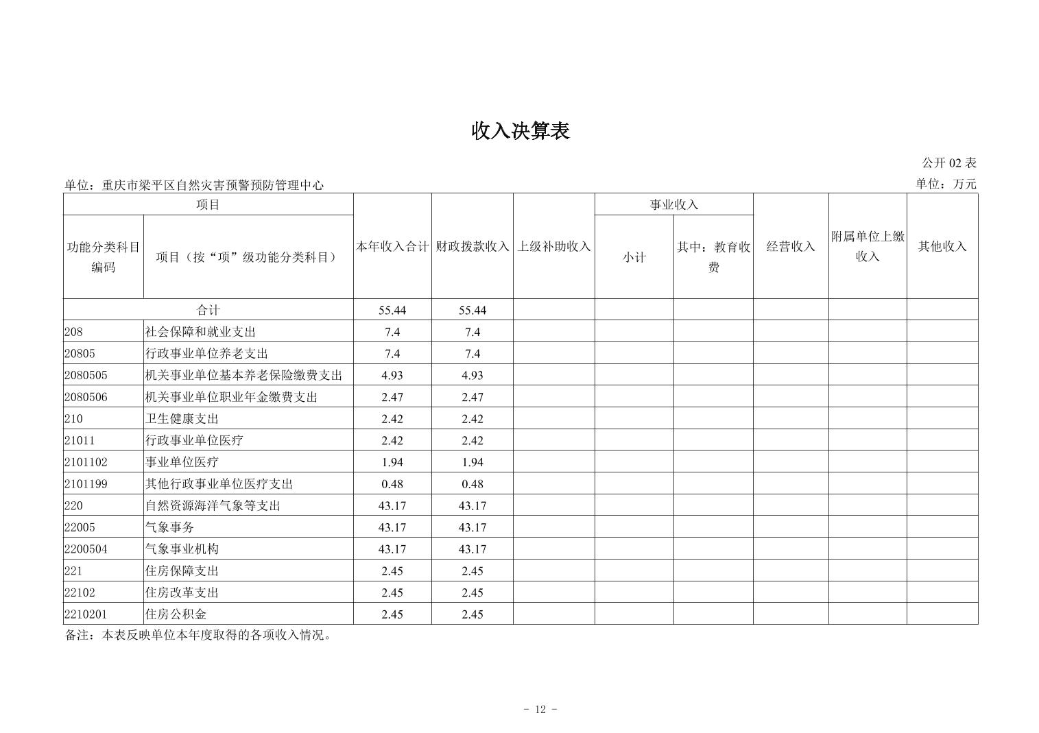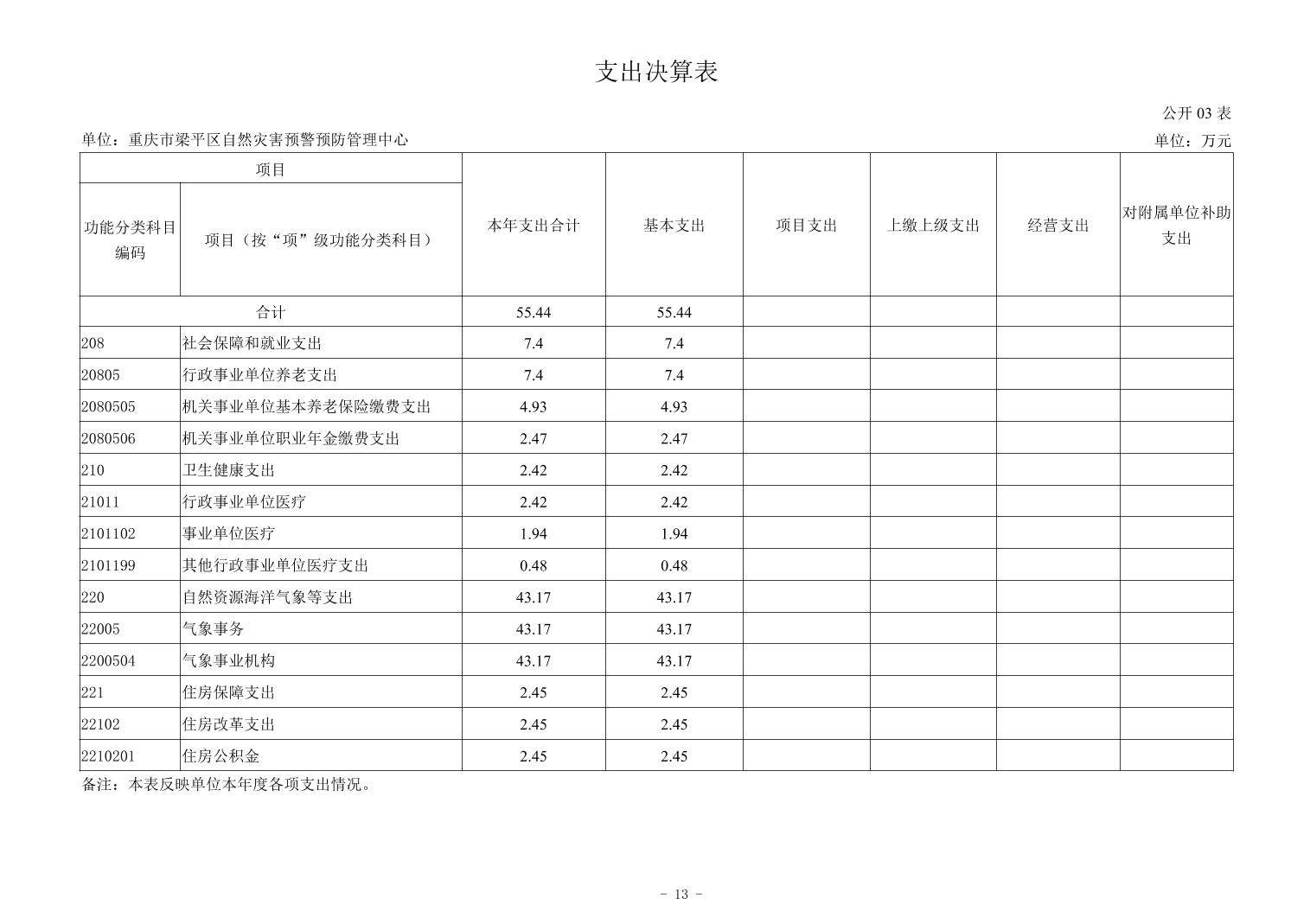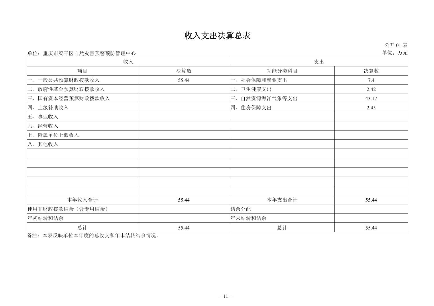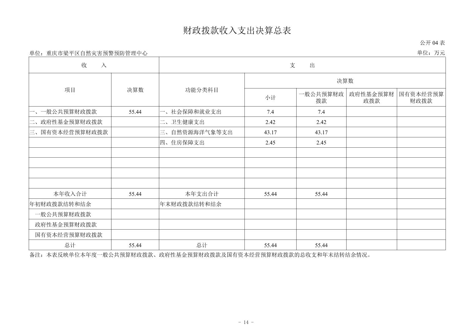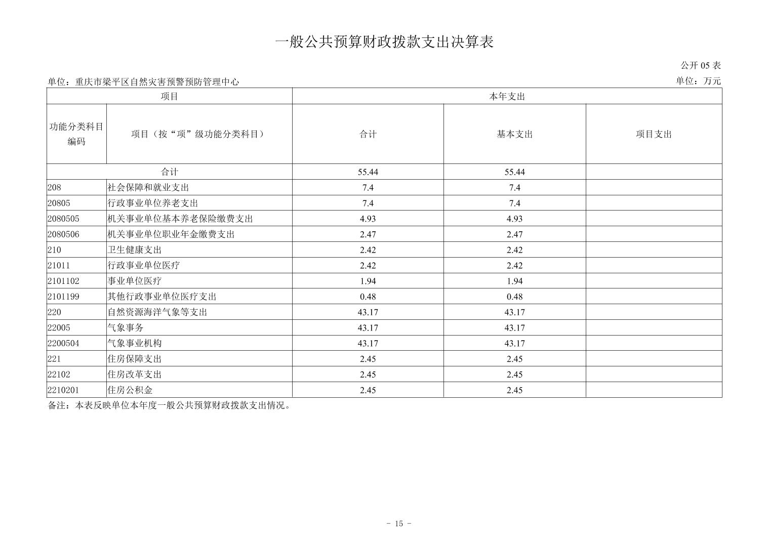 | 標題 | 重慶市梁平區自然災害預警預防管理中心2024年度決算公開說明 |