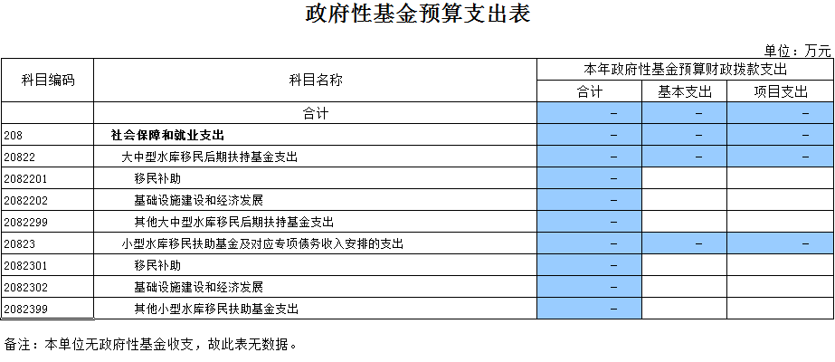 2017年政府性基金預算收入 0萬元,政府性基金預算支出 0 萬元。