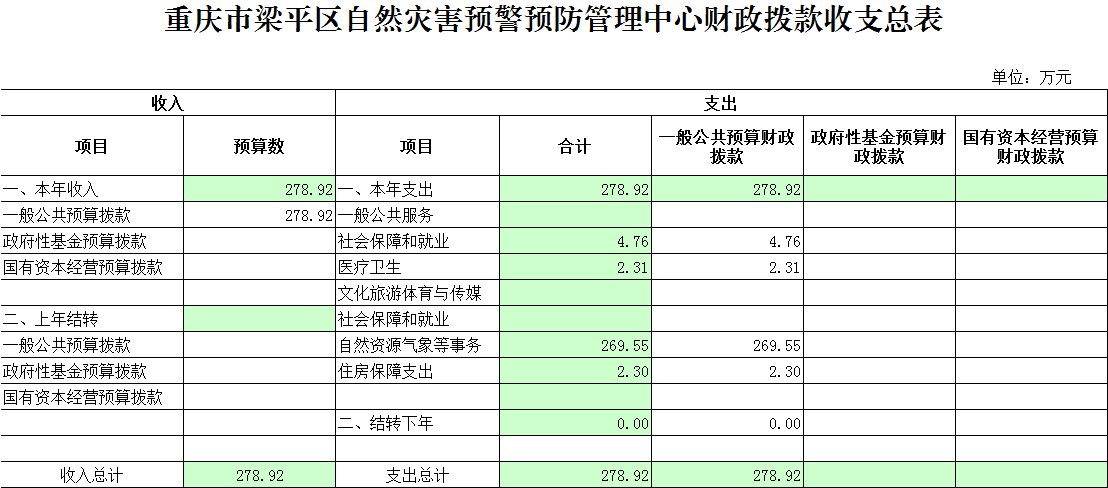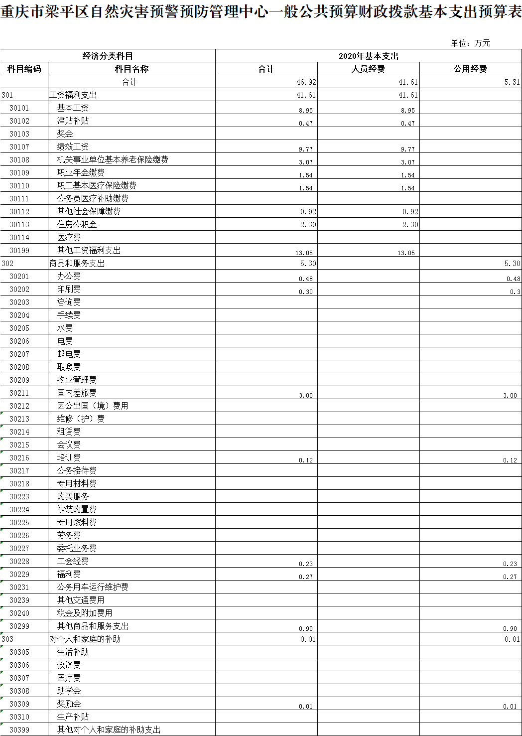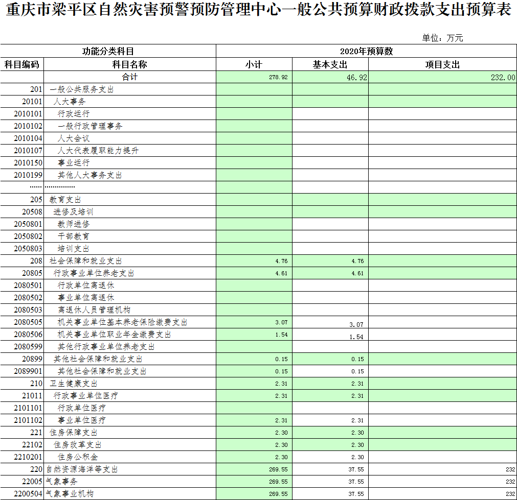 | 標題 | 重慶市梁平區自然災害預警預防管理中心2020年部門預算情況說明 | ||