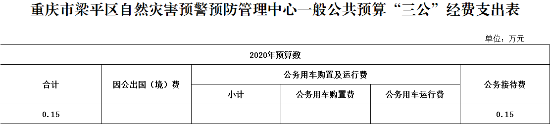 2020年“三公”經費預算0.15萬元,比2019年“三公”經費預算增加0.15萬元。主要原因是2020年增加0.15萬元公務接待費。