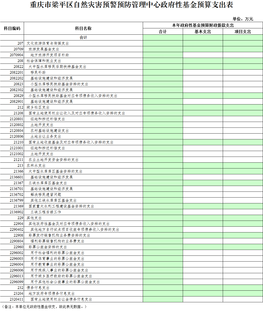 重慶市梁平區自然災害預警預防管理中心2020年未使用政府性基金預算撥款安排的支出。