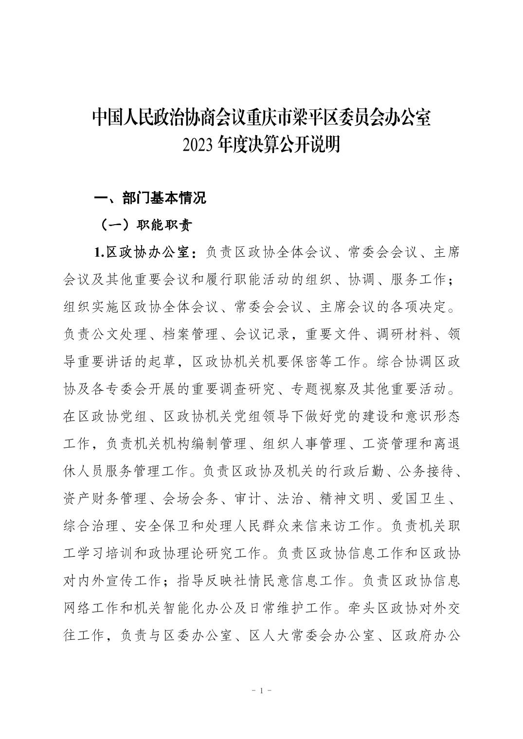 標題 重慶市梁平區政協辦公室2023年度決算公開說明(匯總)