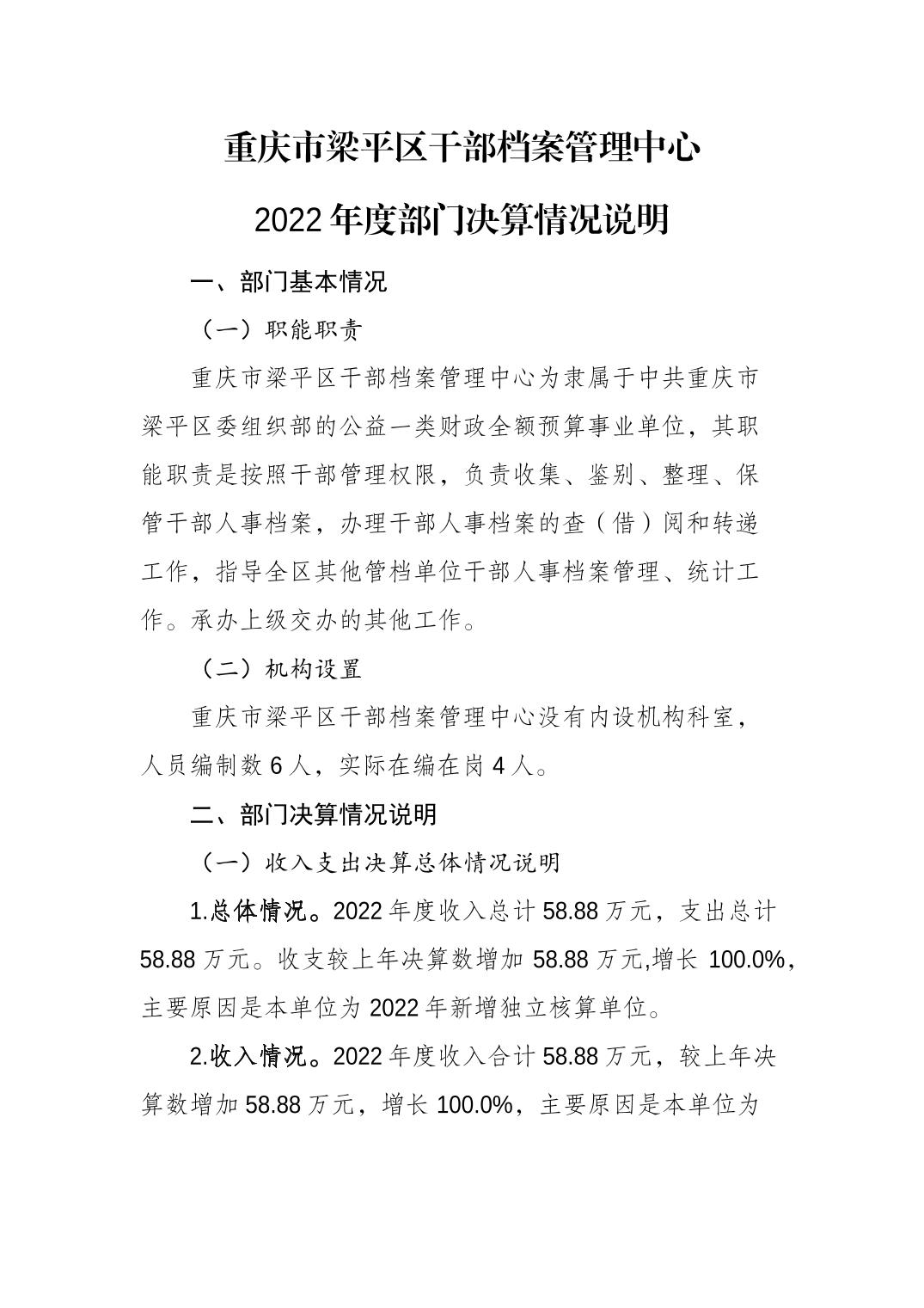 | 標題 | 重慶市梁平區干部檔案管理中心 2022年度部門決算情況說明 |
