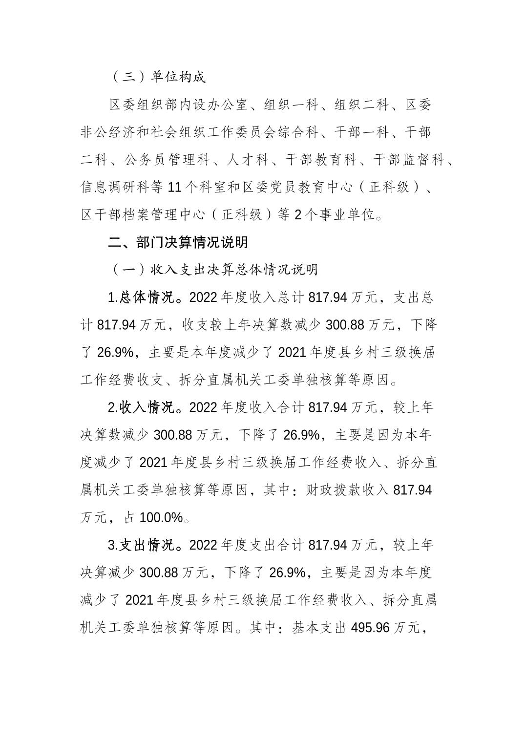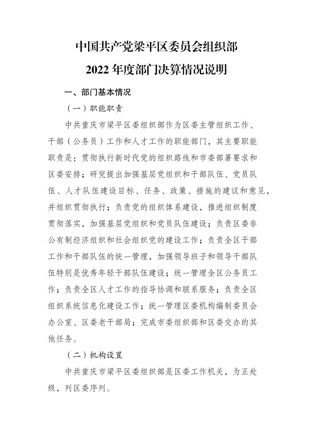| 標題 | 中國共產黨梁平區委員會組織部2022年度部門決算情況說明 |