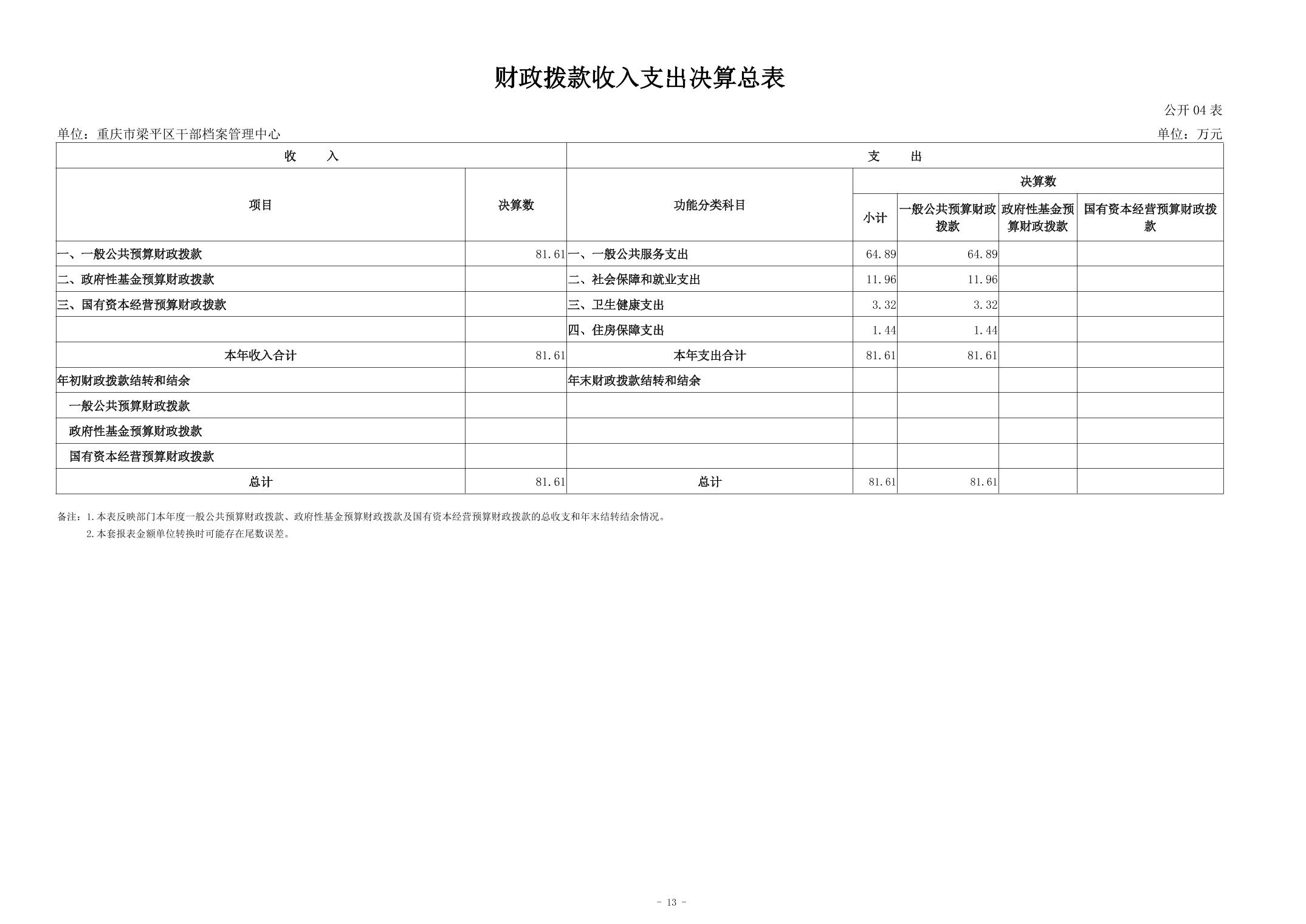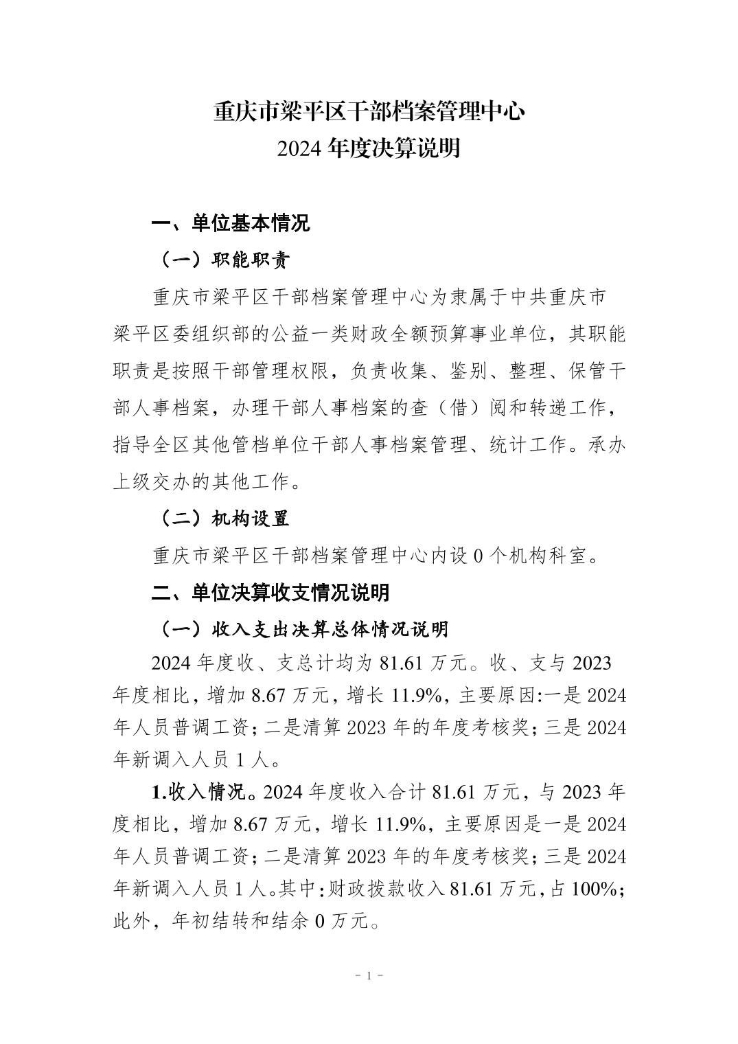 | 標題 | 重慶市梁平區(qū)干部檔案管理中心 2024 年度決算說明 |