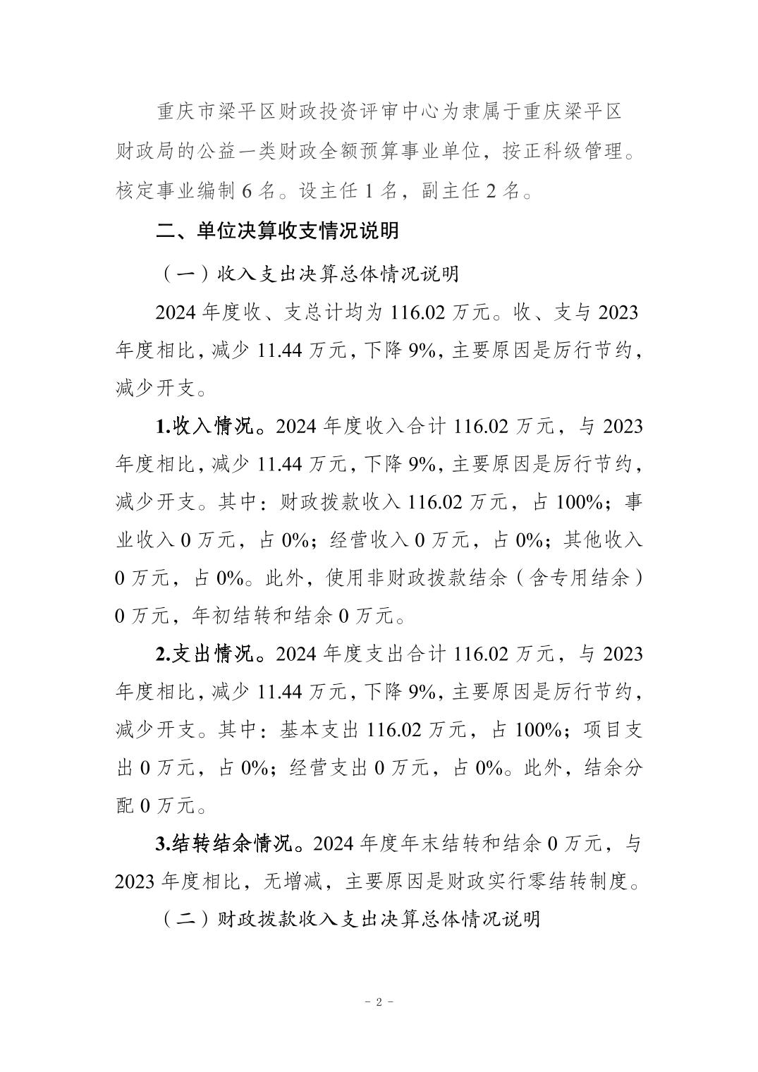 標題 重慶市梁平區財政投資評審中心2024年度決算公開說明