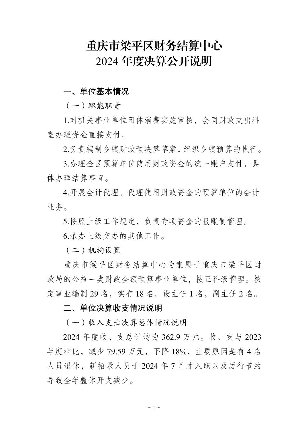 | 標題 | 重慶市梁平區財務結算中心2024年度決算公開說明 |