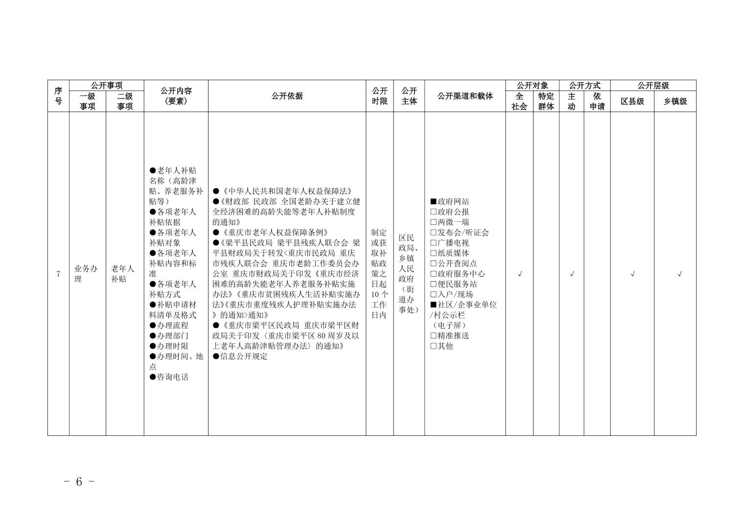 重慶市梁平區養老服務領域基層政務公開標準目錄(2026年)