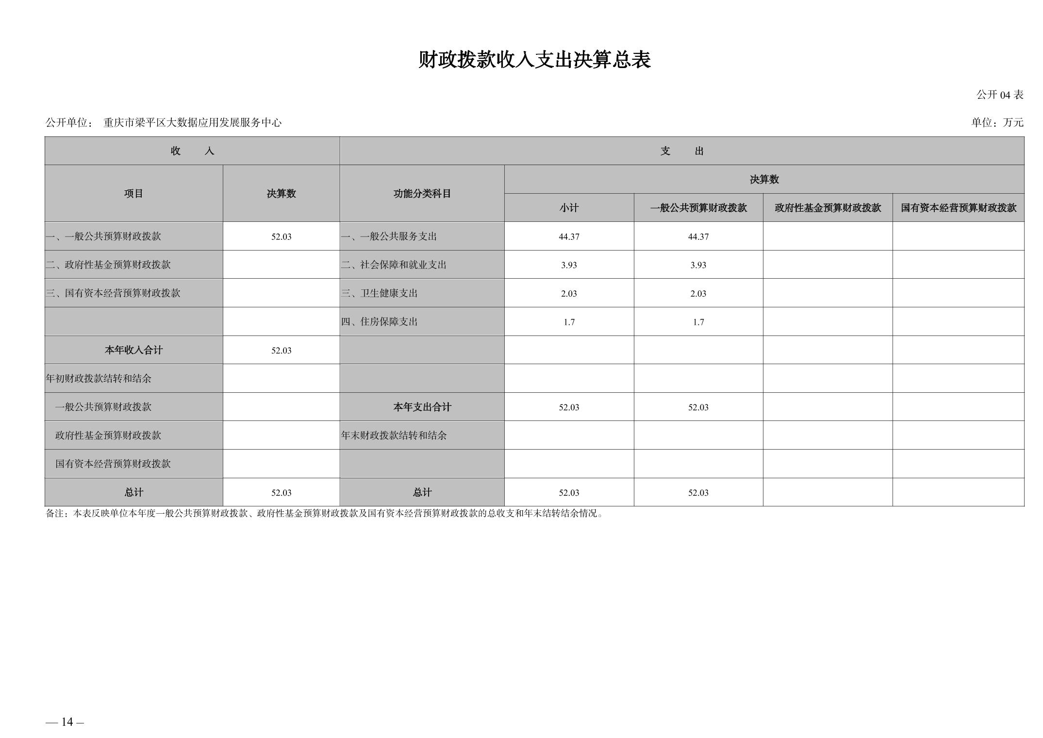| 標題 | 重慶市梁平區大數據應用發展服務中心 2023年度決算公開說明 |