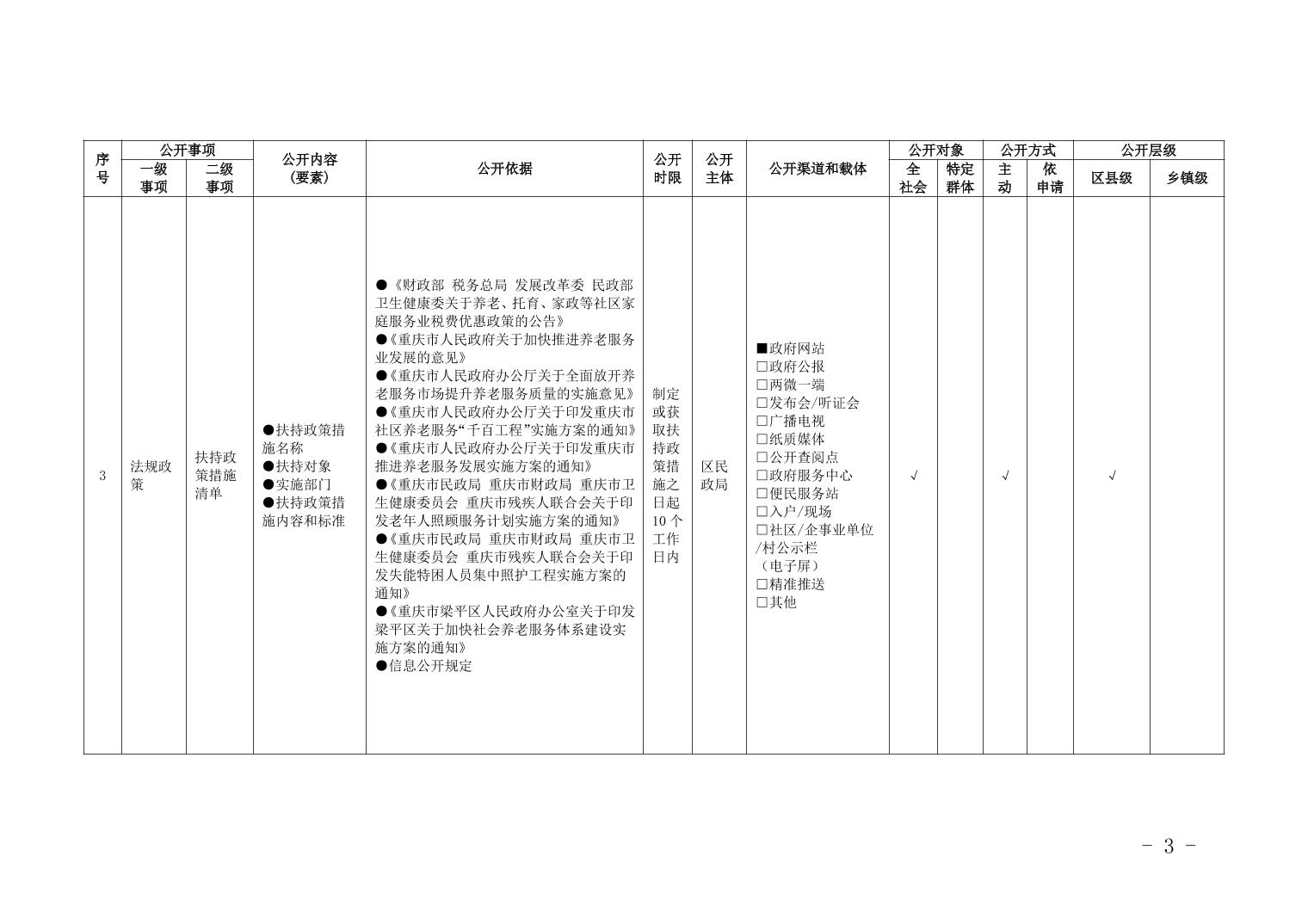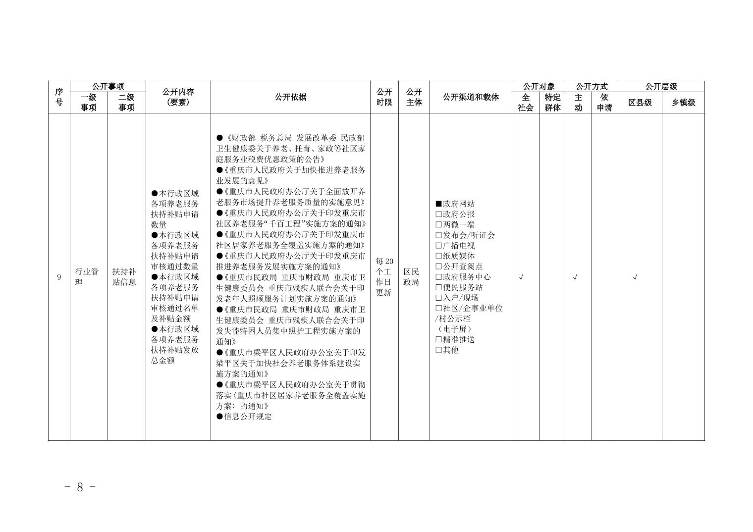 重慶市梁平區養老服務領域基層政務公開標準目錄(2026年)