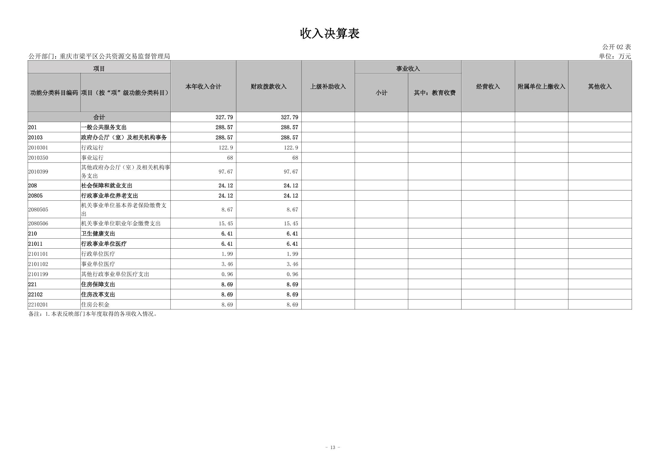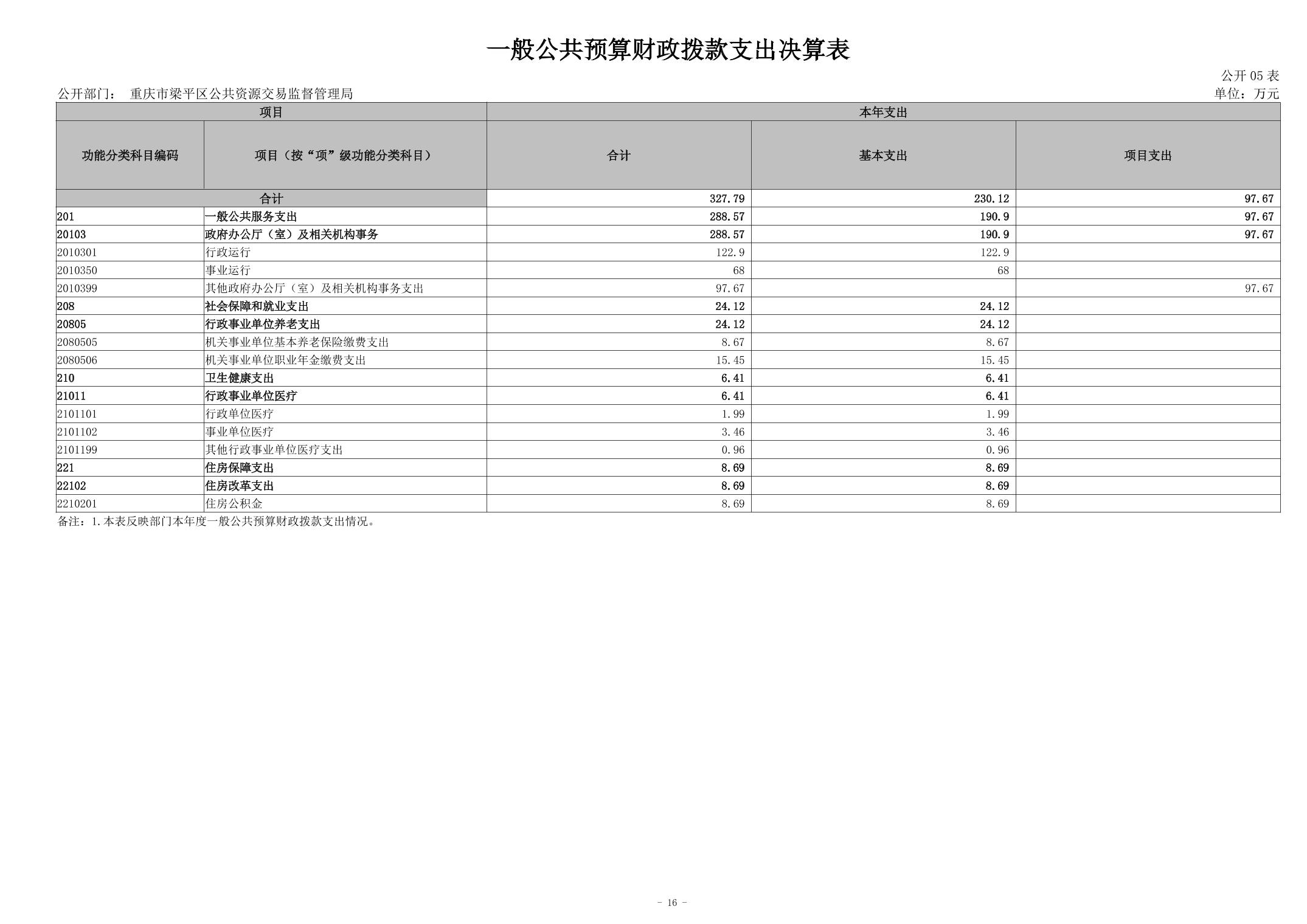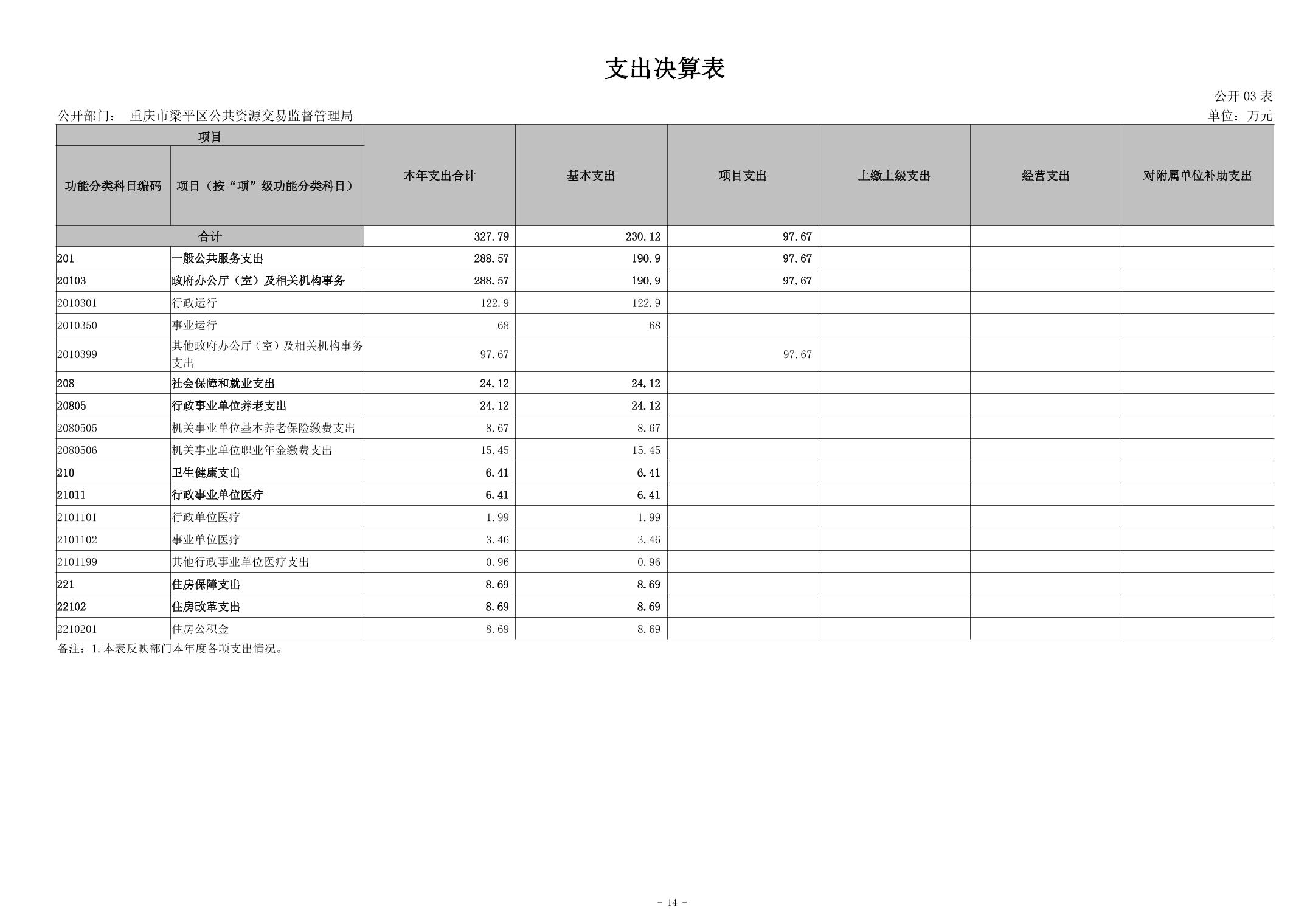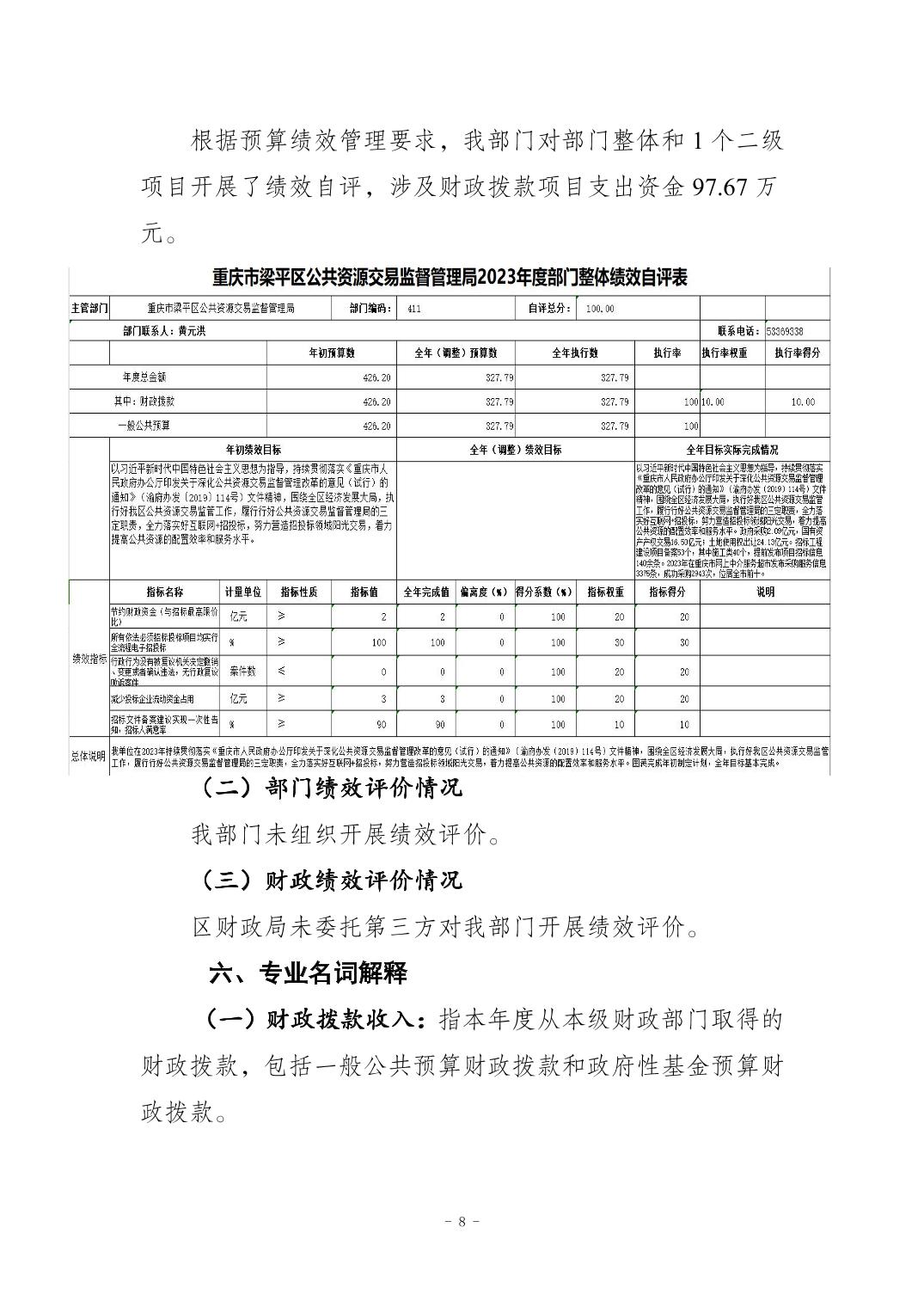 | 標題 | 重慶市梁平區公共資源交易監督管理局2023年度決算公開說明及公開報表 |