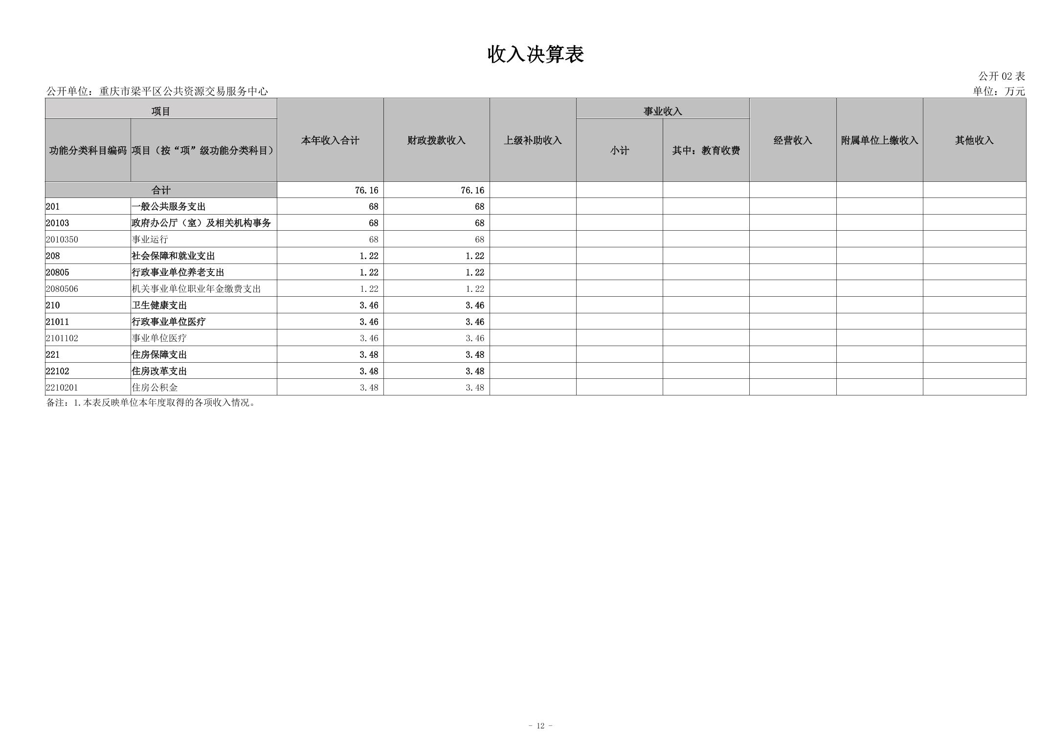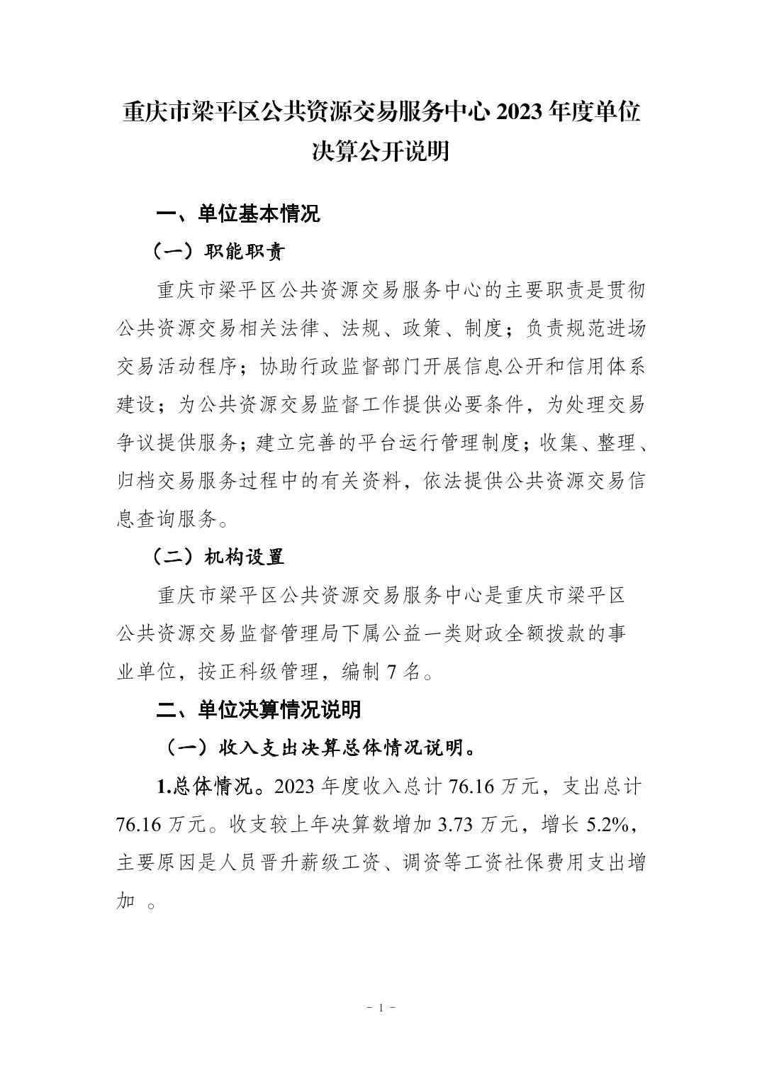 | 標題 | 重慶市梁平區公共資源交易服務中心2023年度決算公開說明及公開報表 |