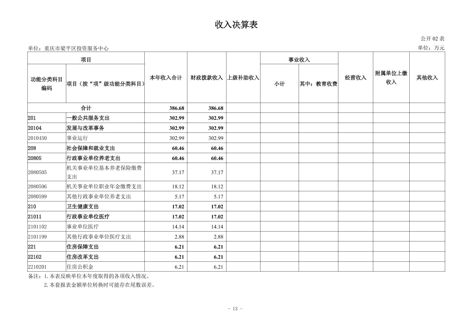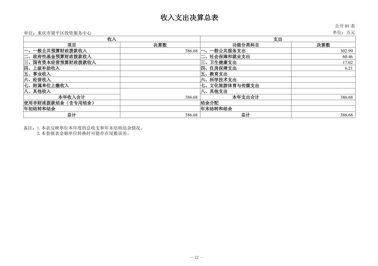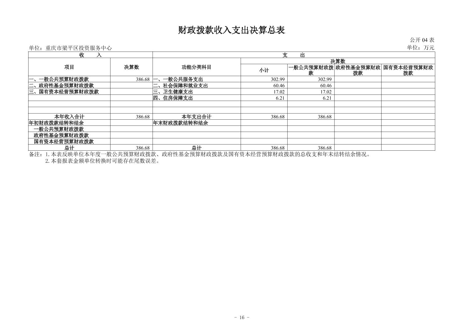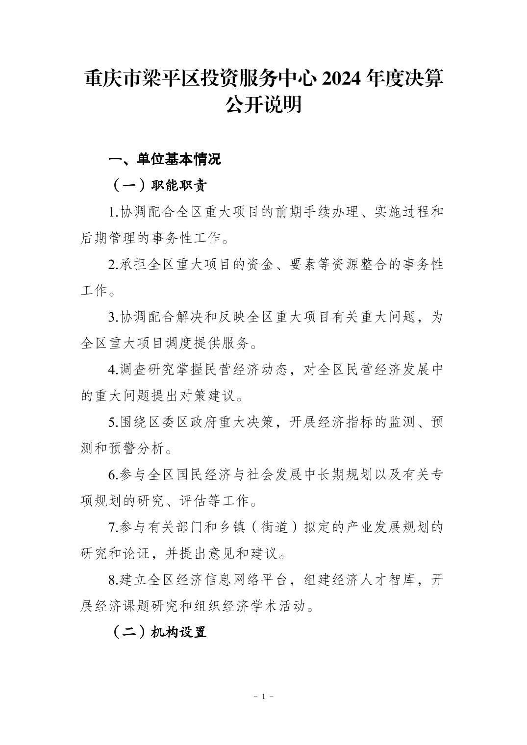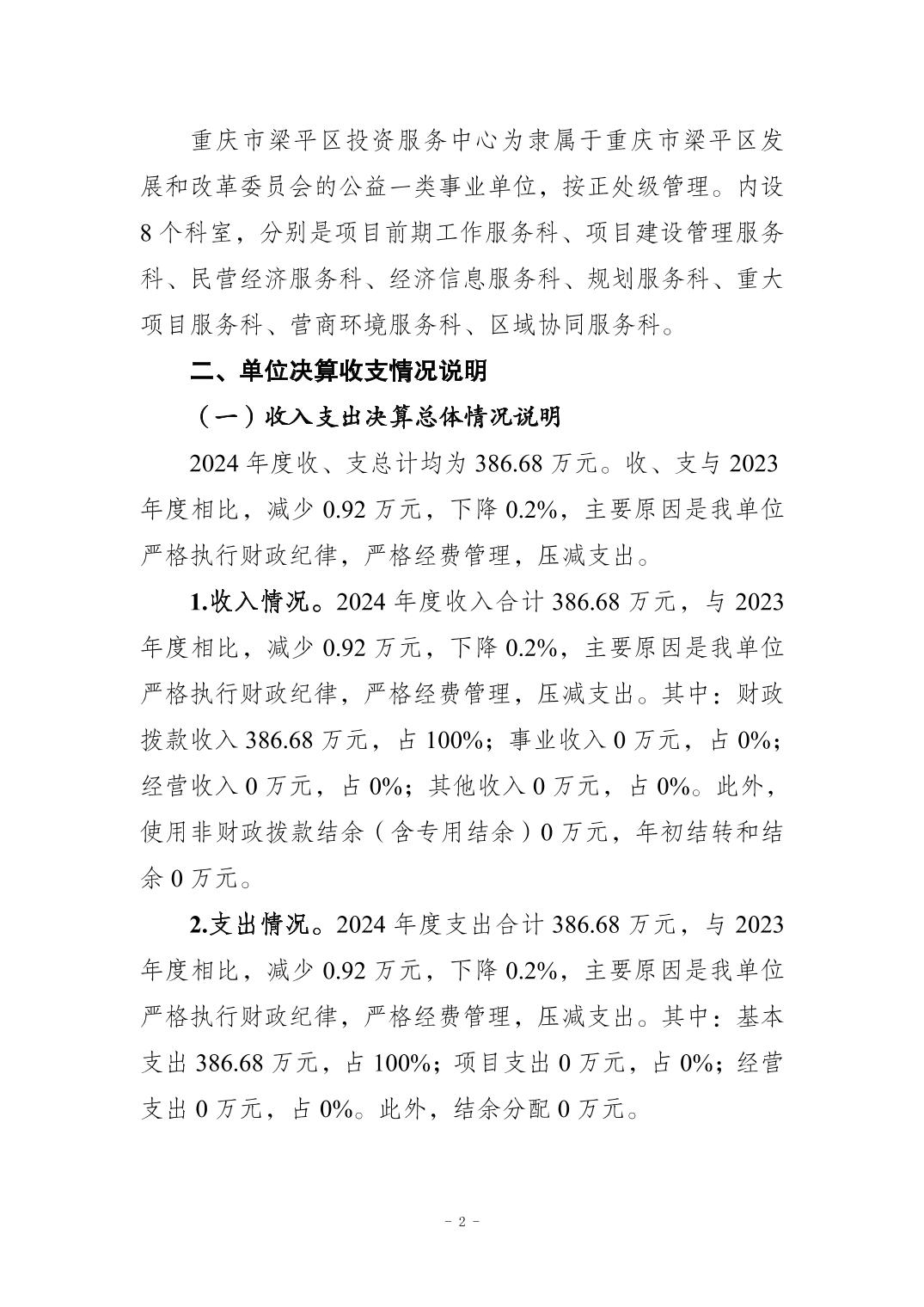 標(biāo)題 重慶市梁平區(qū)投資服務(wù)中心2024年度決算公開(kāi)說(shuō)明及報(bào)表