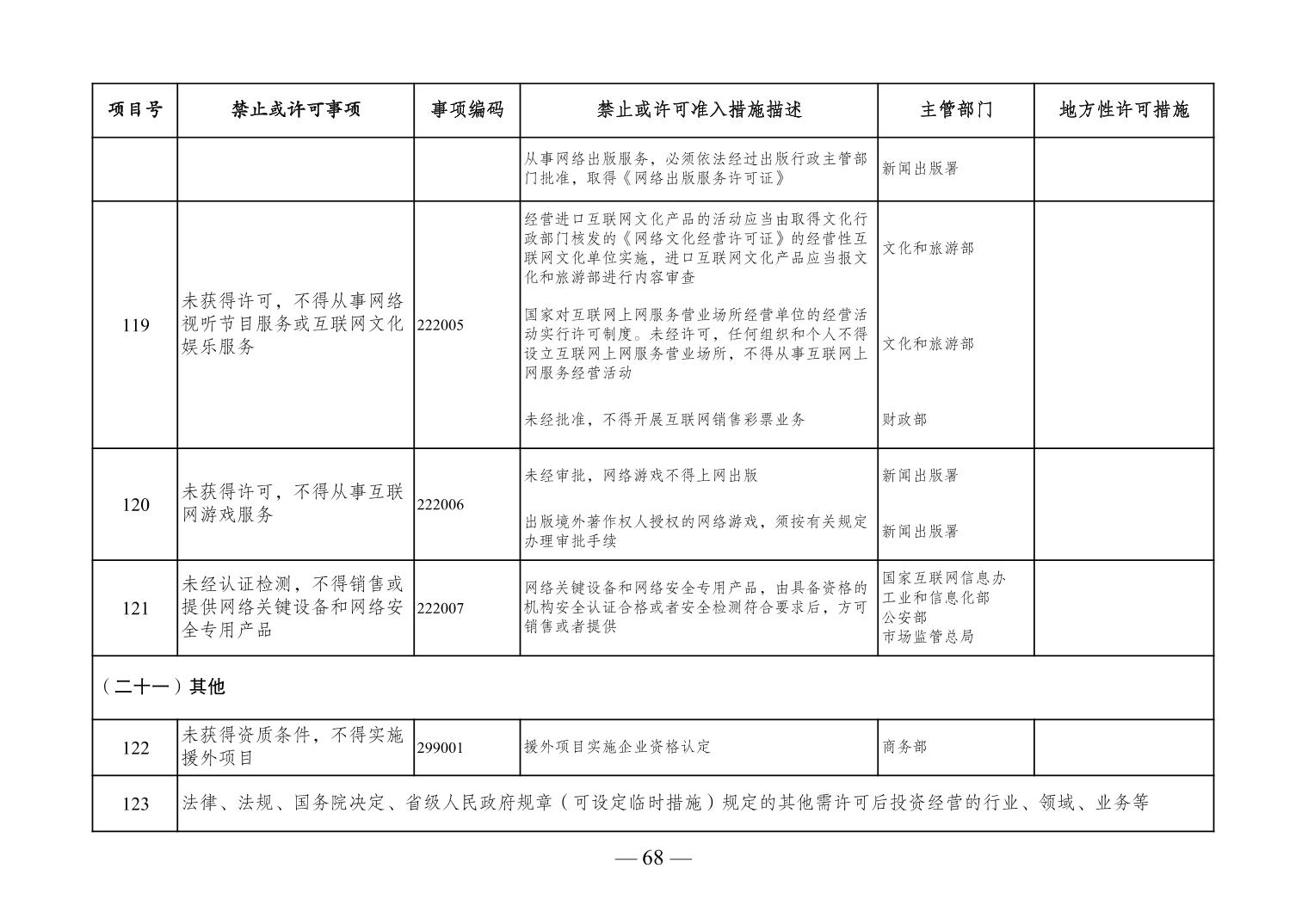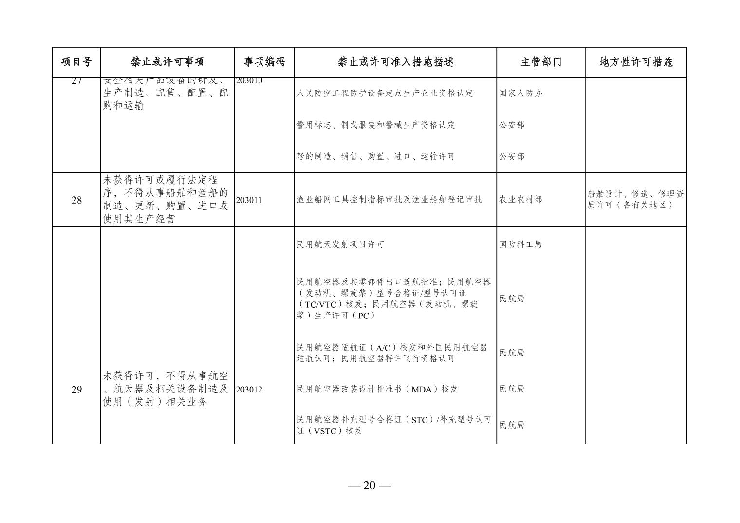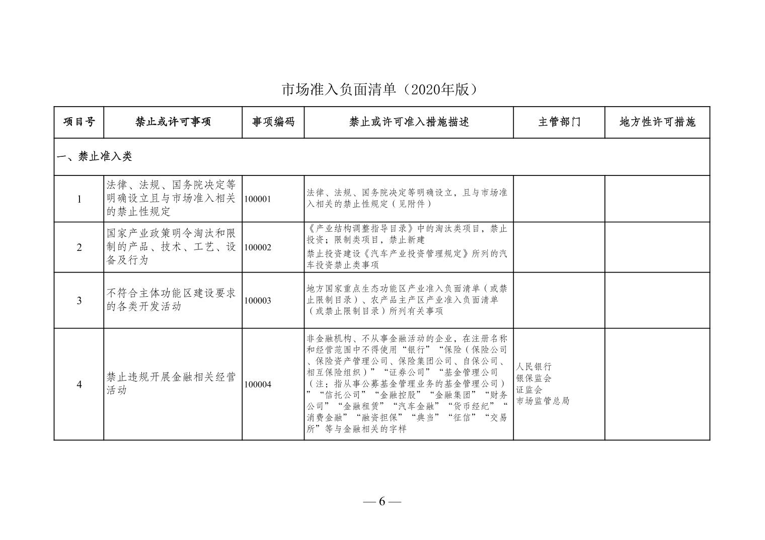 標題 市場準入負面清單(2020年版)