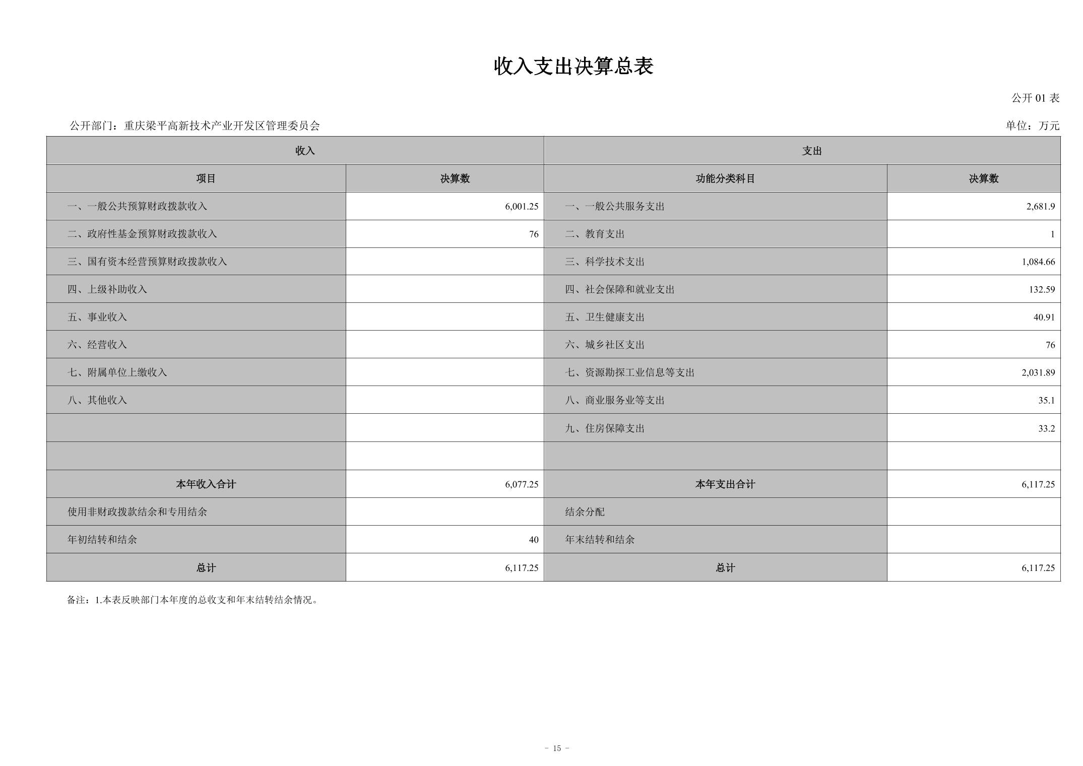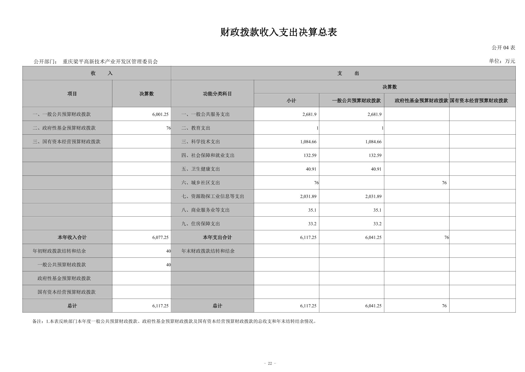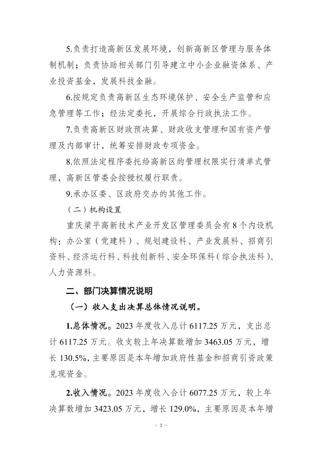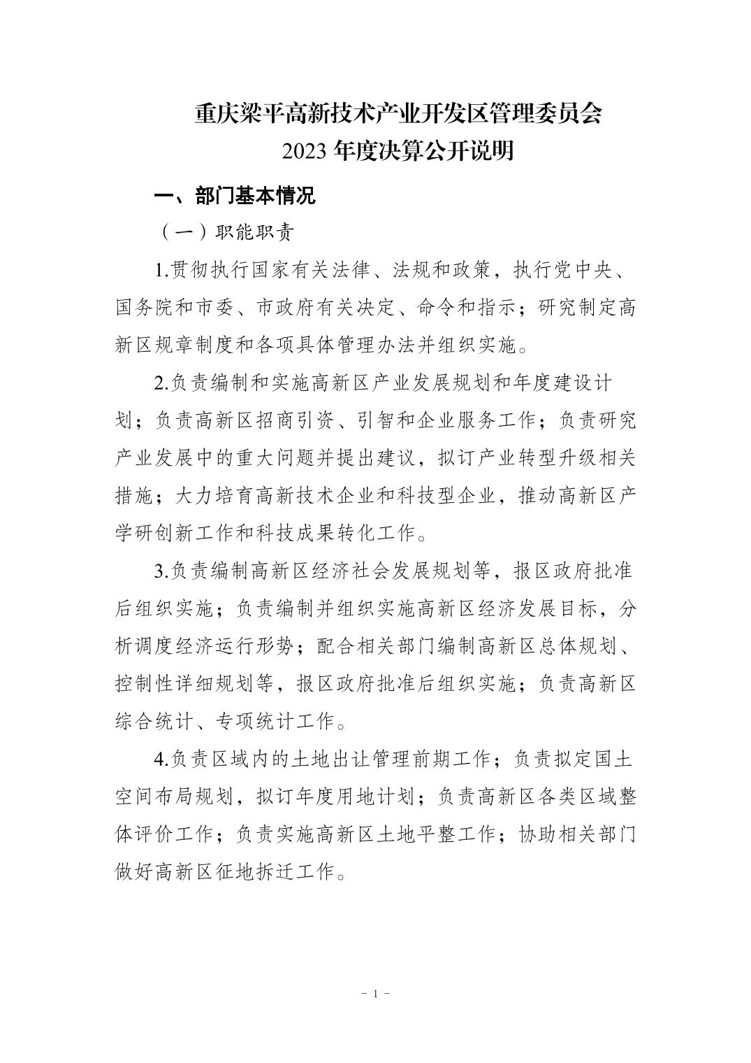 標題 重慶梁平高新技術產業開發區管理委員會決算公開說明