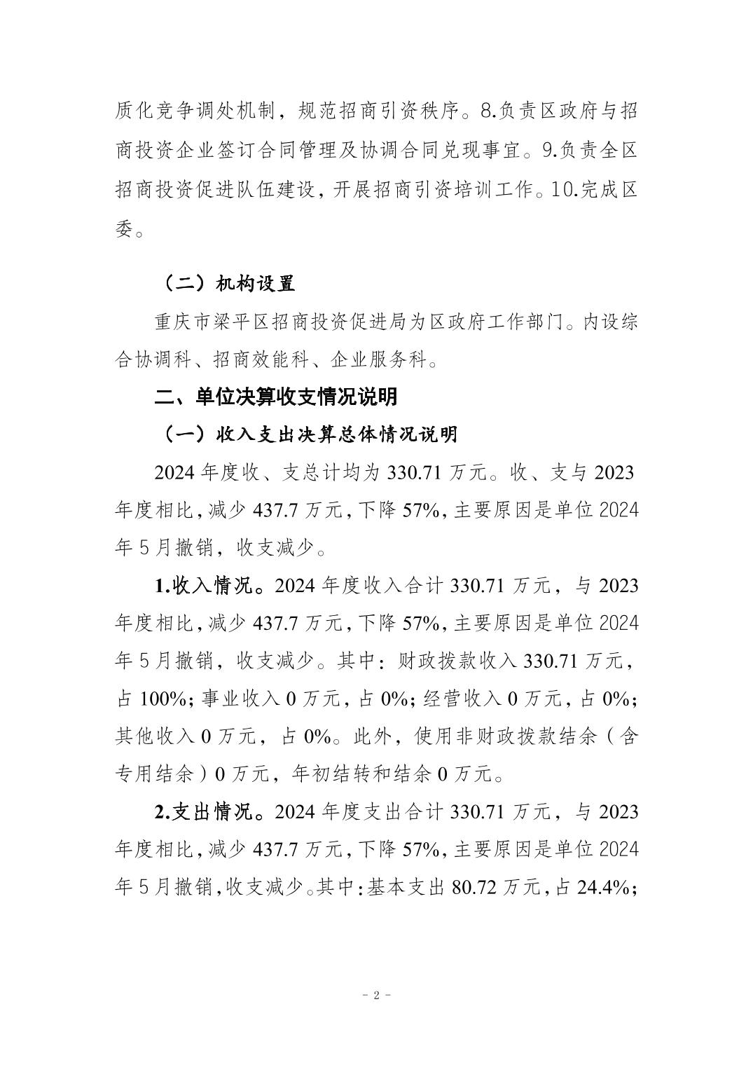 | 標題 | 重慶市梁平區(qū)招商投資促進局(本級) 2024 年度決算公開說明 |