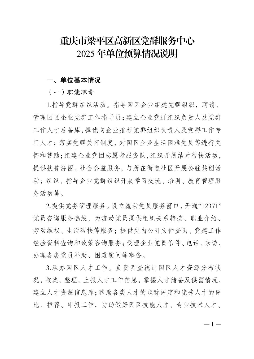 | 標題 | 重慶市梁平區高新區黨群服務中心 2025年單位預算情況說明 |
