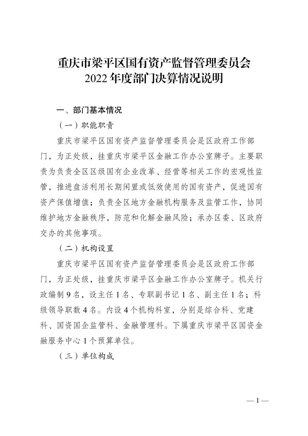 標題 重慶市梁平區國有資產監督管理委員會2022年度部門決算情況說明