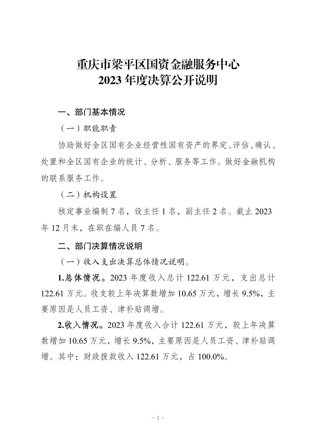 標(biāo)題 重慶市梁平區(qū)國資金融服務(wù)中心2023年度單位決算公開說明