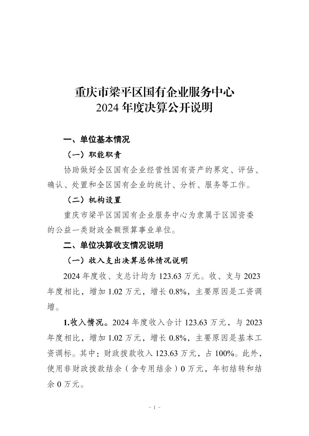 | 標(biāo)題 | 重慶市梁平區(qū)國(guó)有企業(yè)服務(wù)中心2024年度決算公開說(shuō)明 |