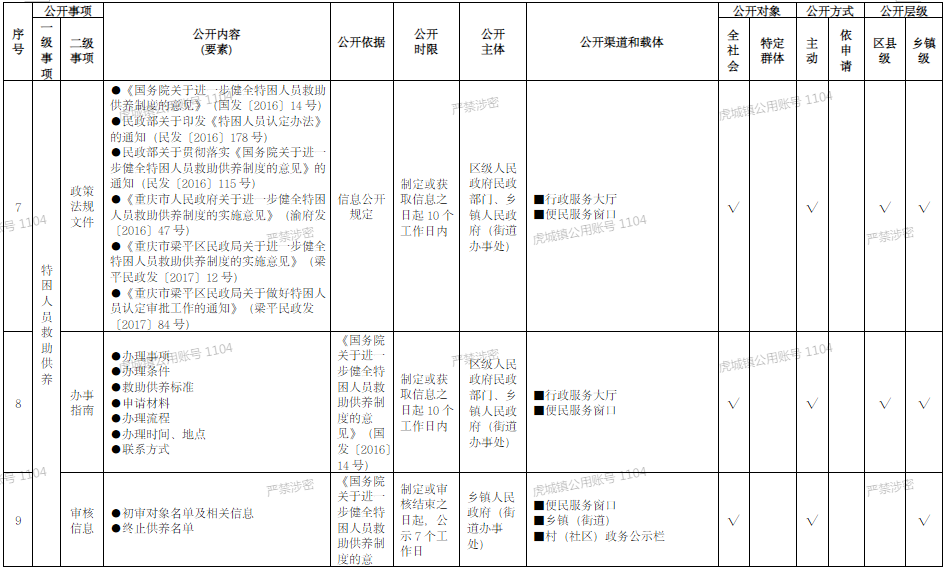 重慶市梁平區鄉鎮(街道)社會救助領域基層政務公開標準目錄