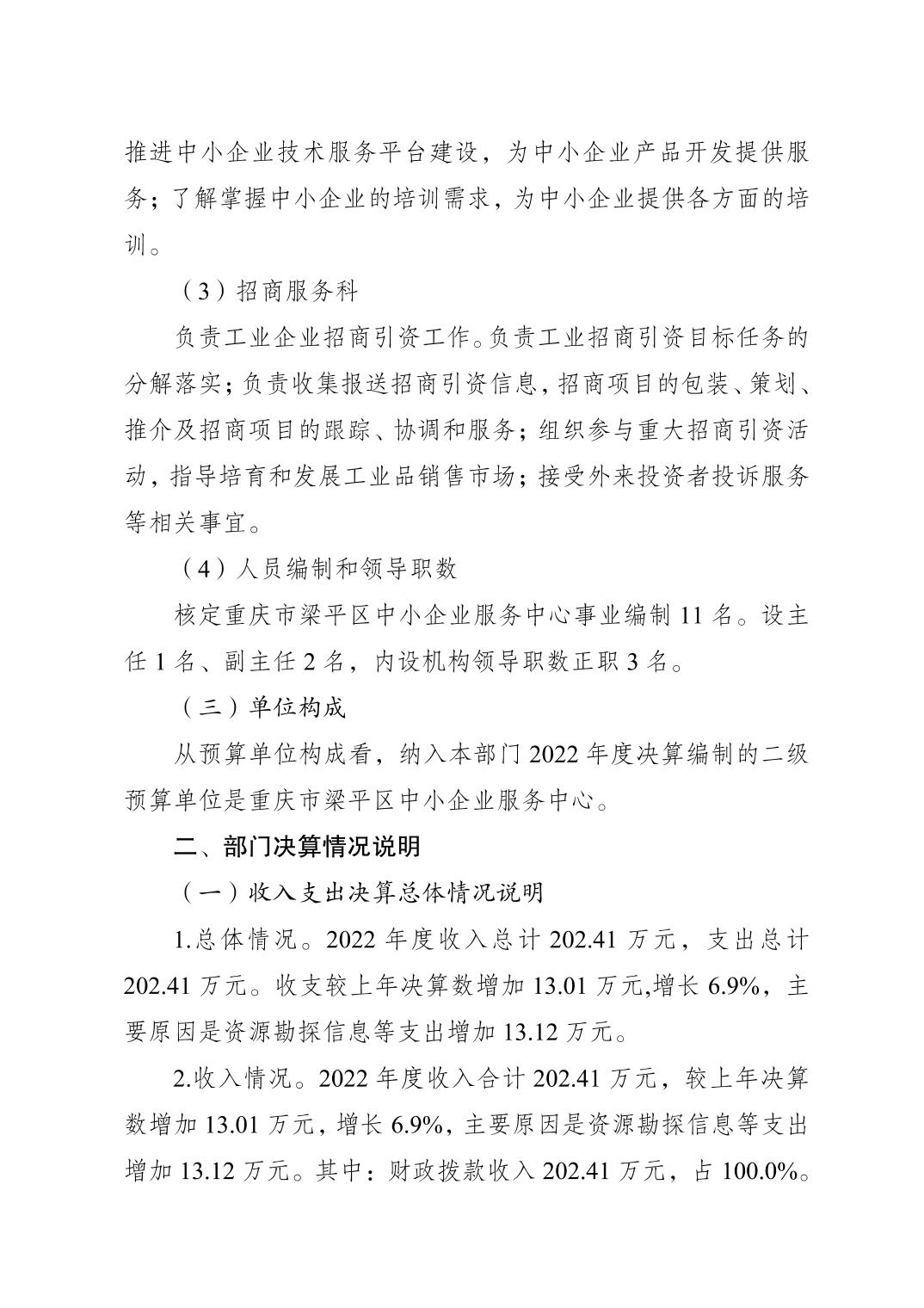 | 標(biāo)題 | 重慶市梁平區(qū)中小企業(yè)服務(wù)中心 2022年度單位決算情況說(shuō)明 | ||
