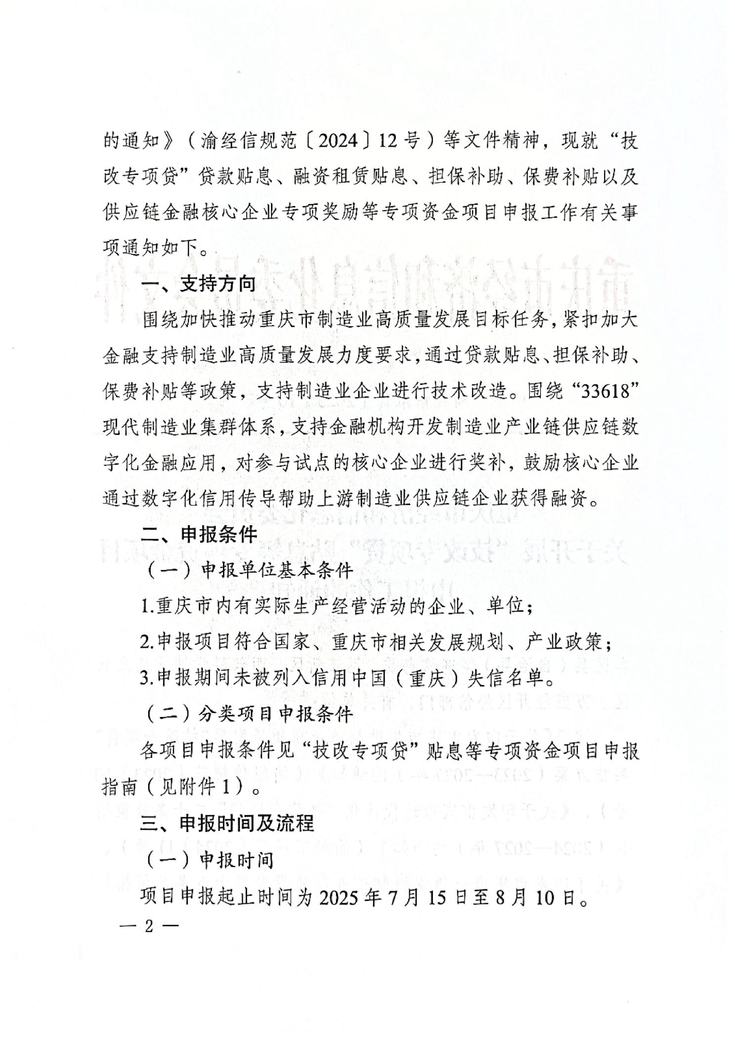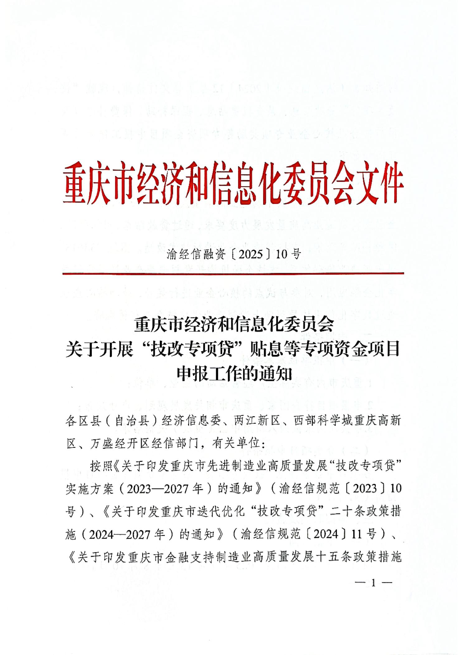 標題 重慶市經濟和信息化委員會關于開展“技改專項貸”貼息等專項資金項目申報工作的通知