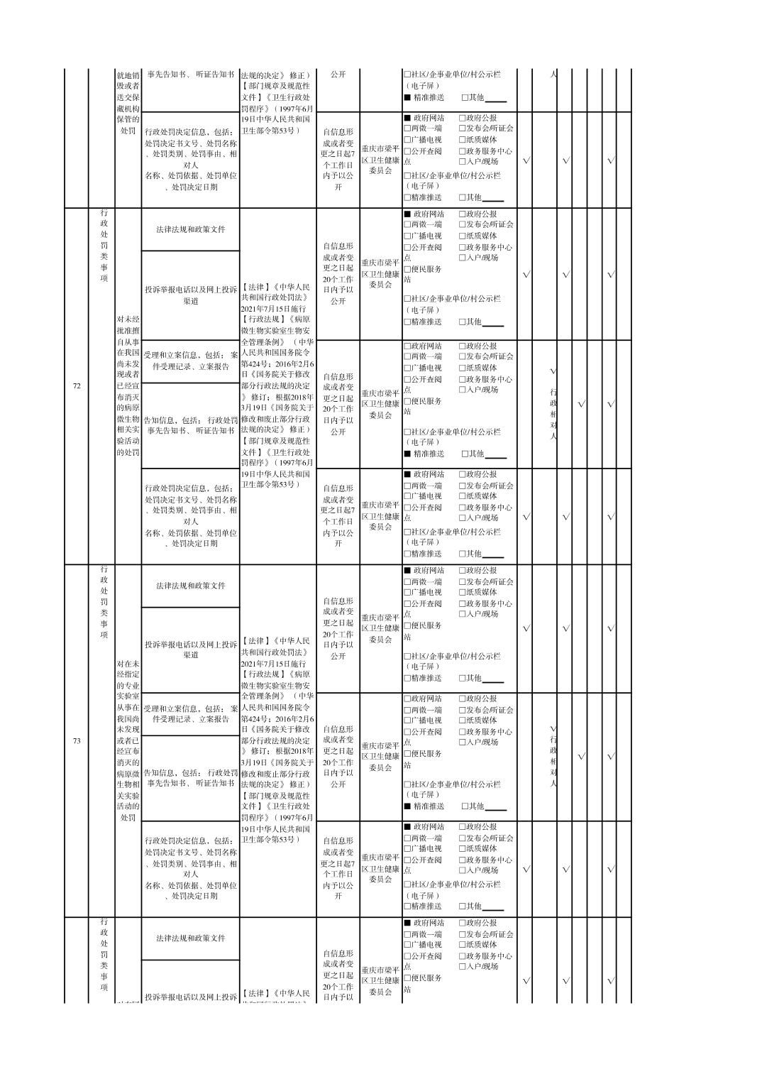 重慶市梁平區衛生健康領域基層政務公開標準目錄