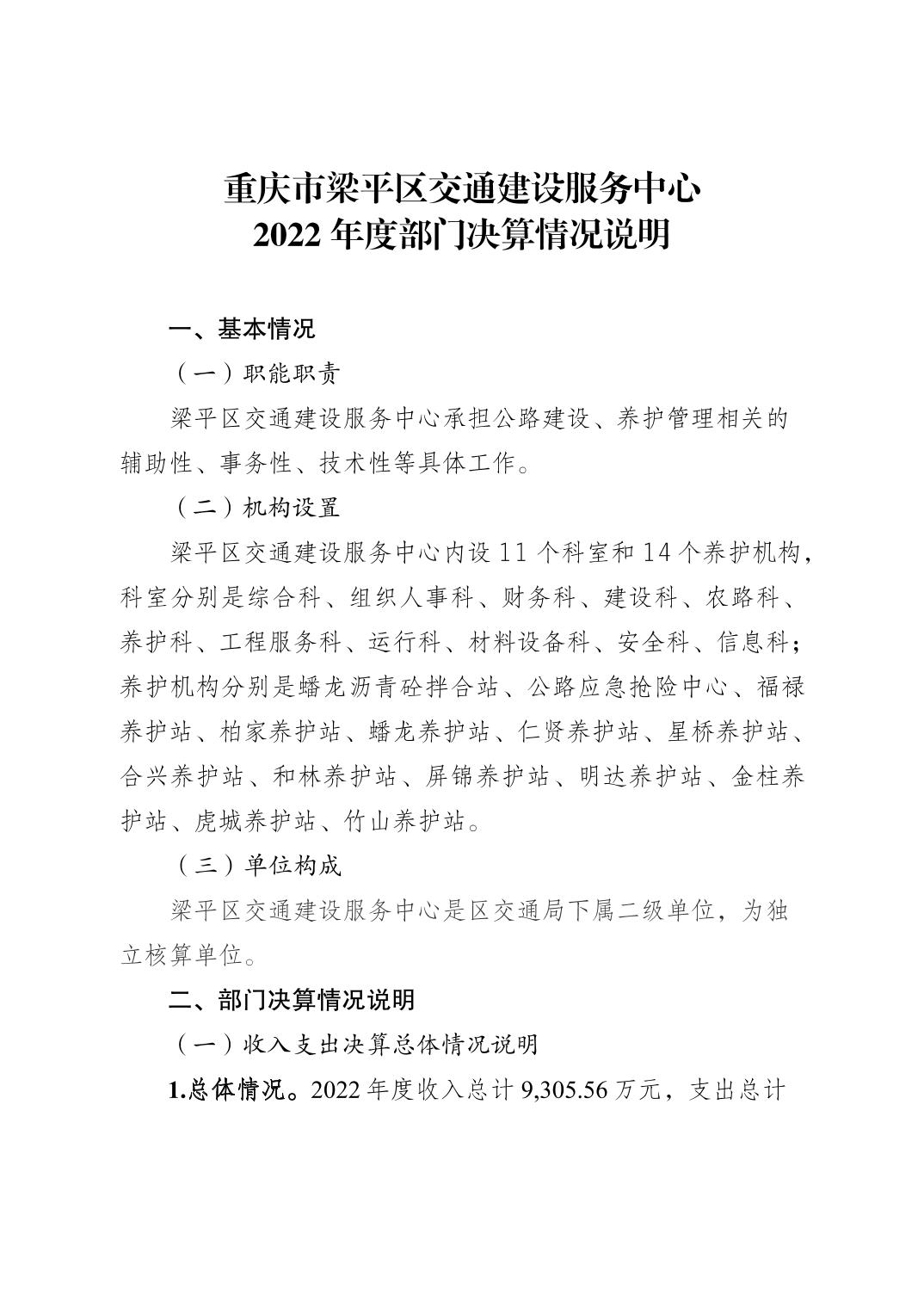 標(biāo)題 重慶市梁平區(qū)交通建設(shè)服務(wù)中心 2022年度部門決算情況說明