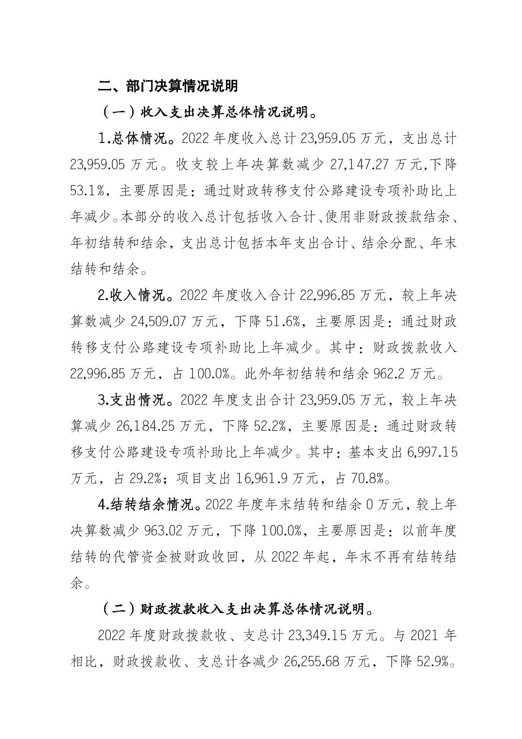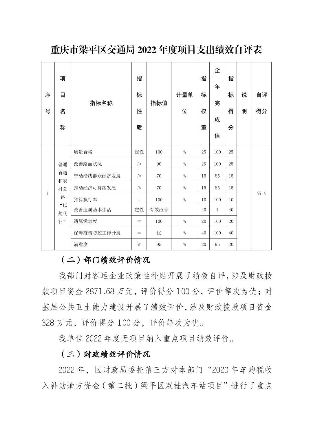 | 標題 | 重慶市梁平區(qū)交通局(匯總) 2022年度區(qū)級部門決算公開說明 | ||