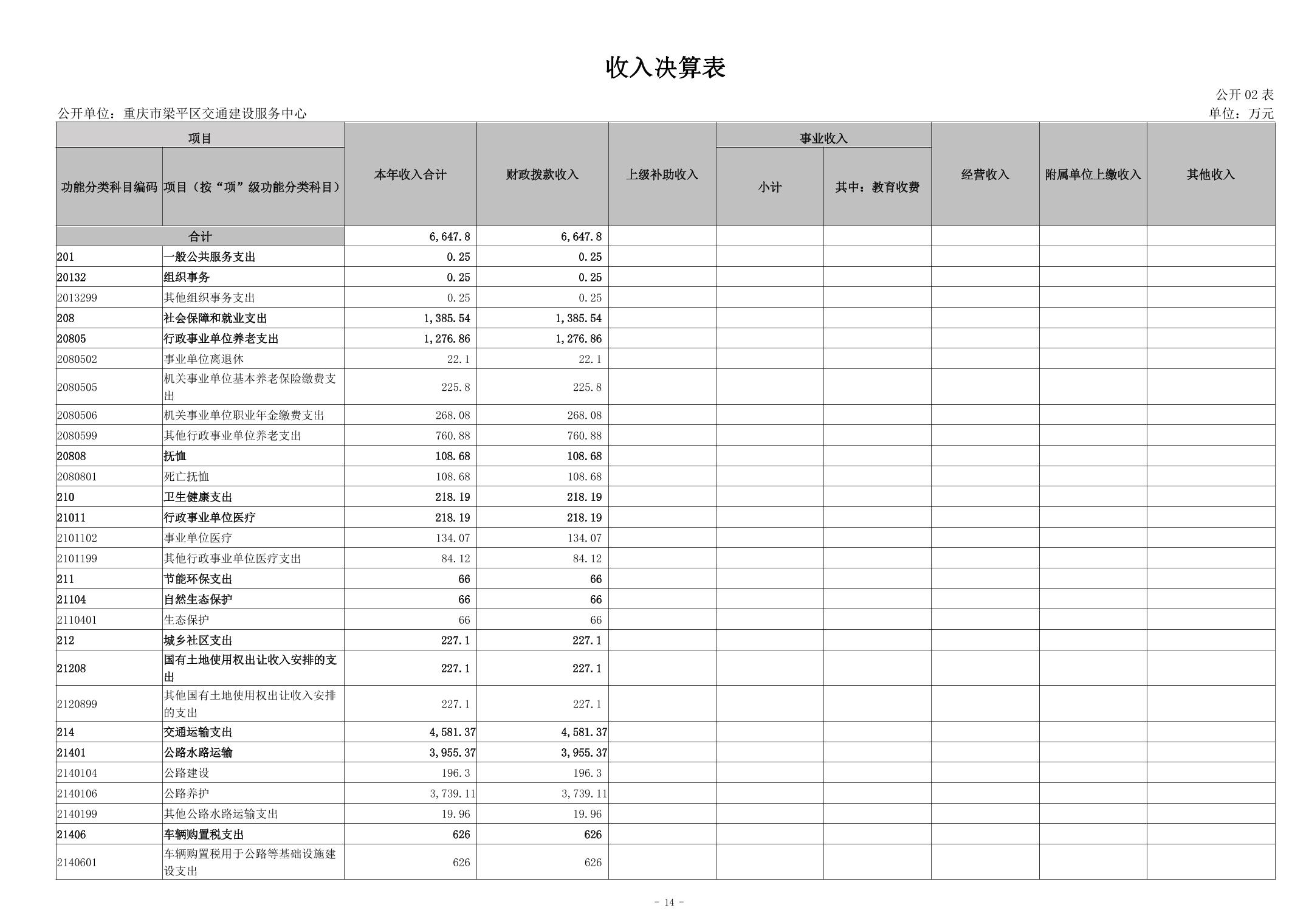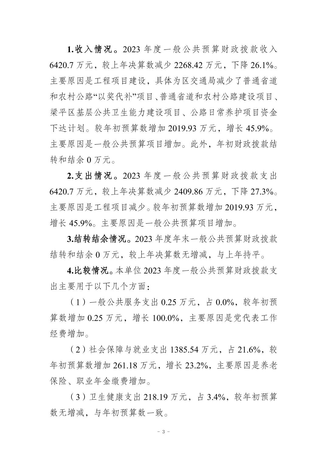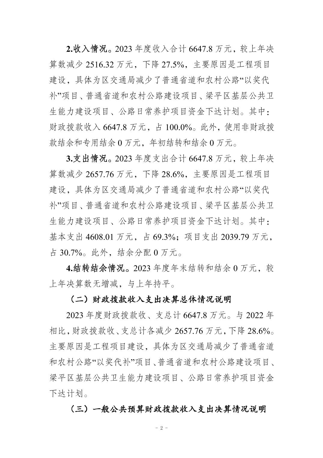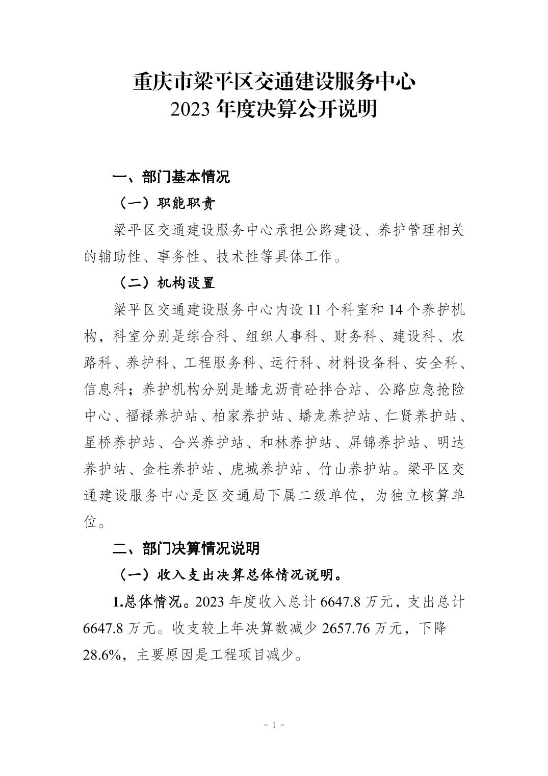 標題 重慶市梁平區交通建設服務中心2023年度決算公開說明
