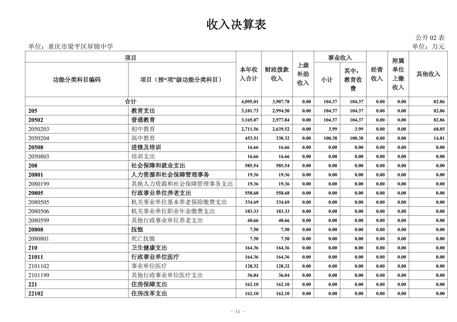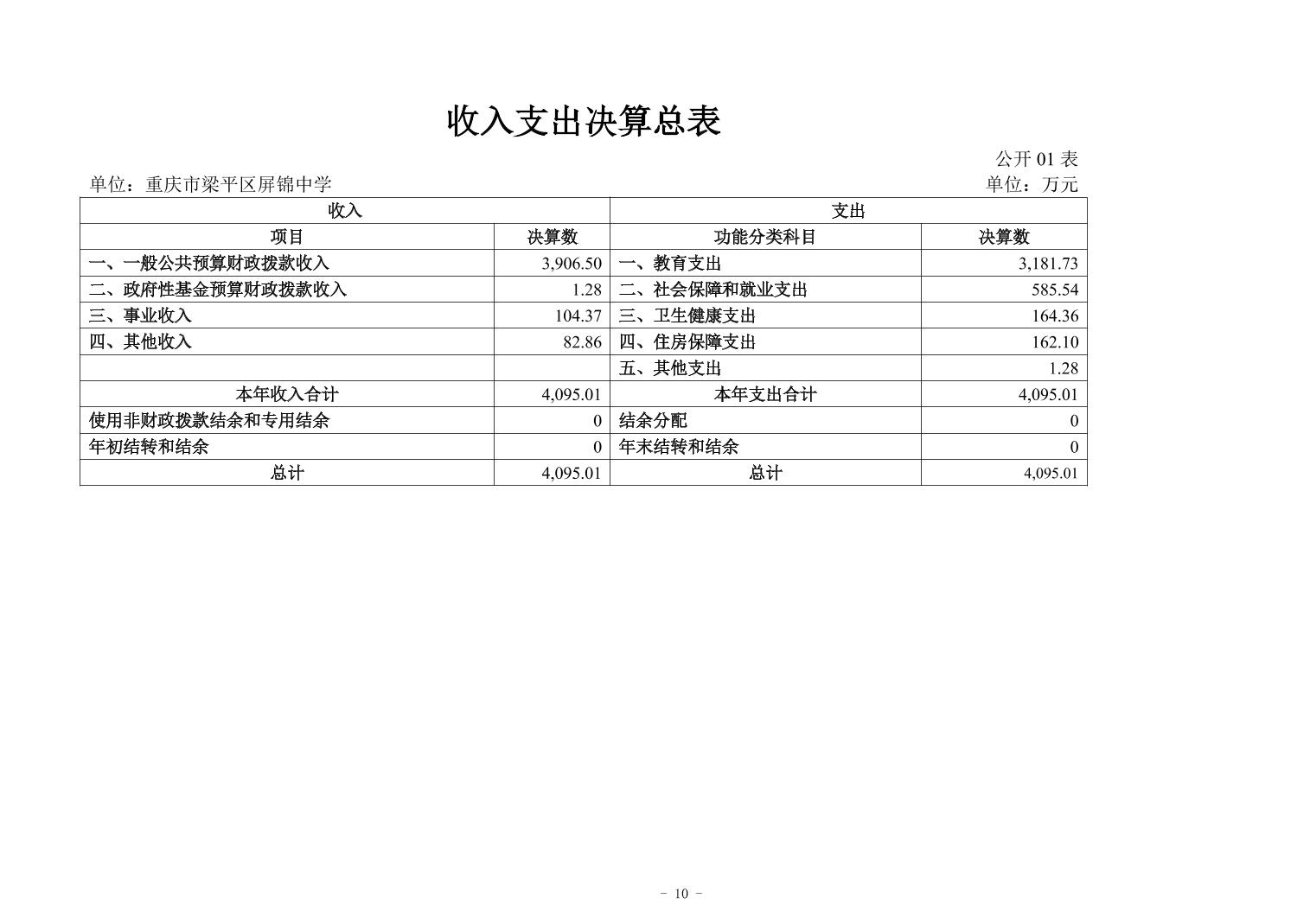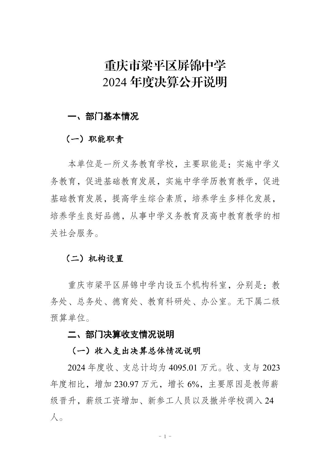 標題 重慶市梁平區(qū)屏錦中學2024年決算公開說明