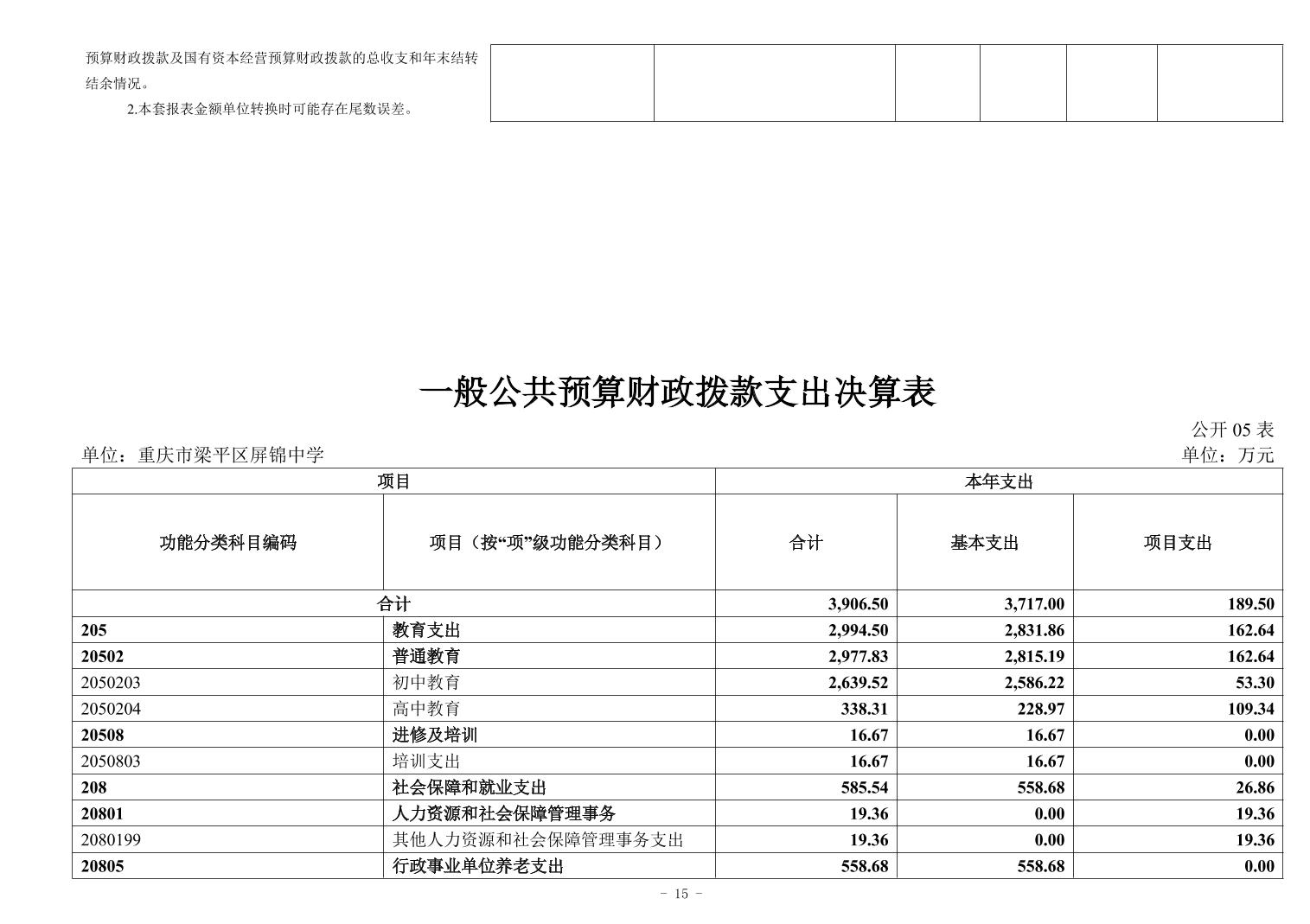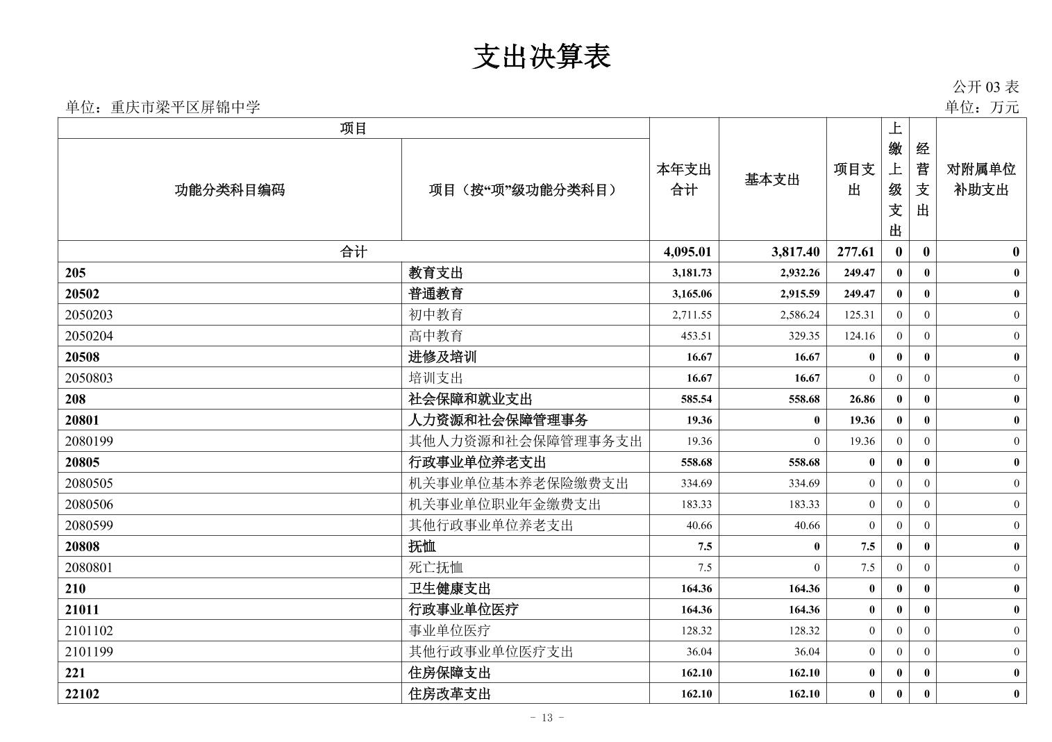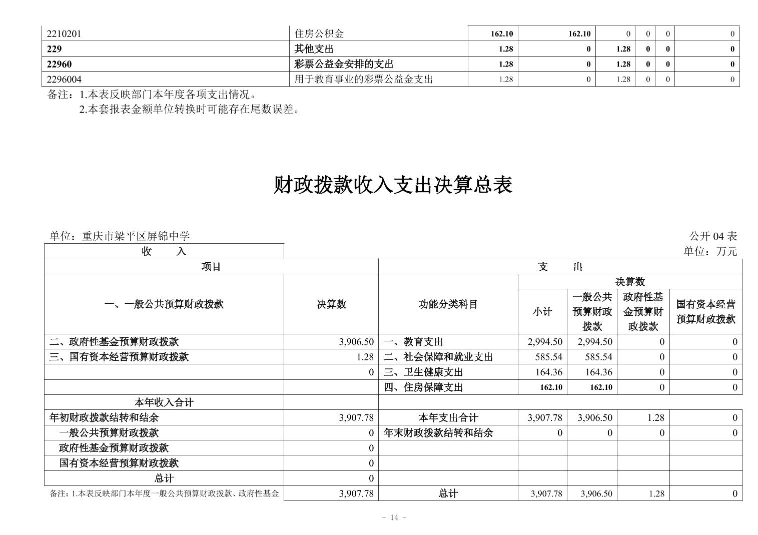 標題 重慶市梁平區(qū)屏錦中學2024年決算公開說明