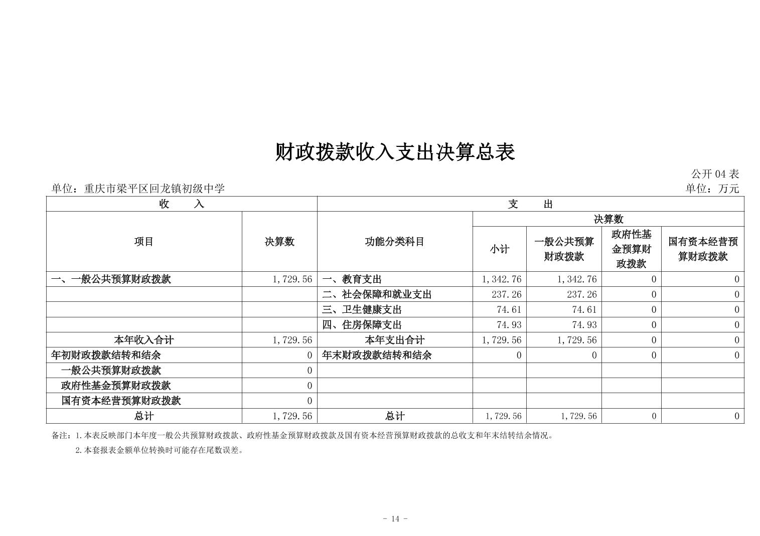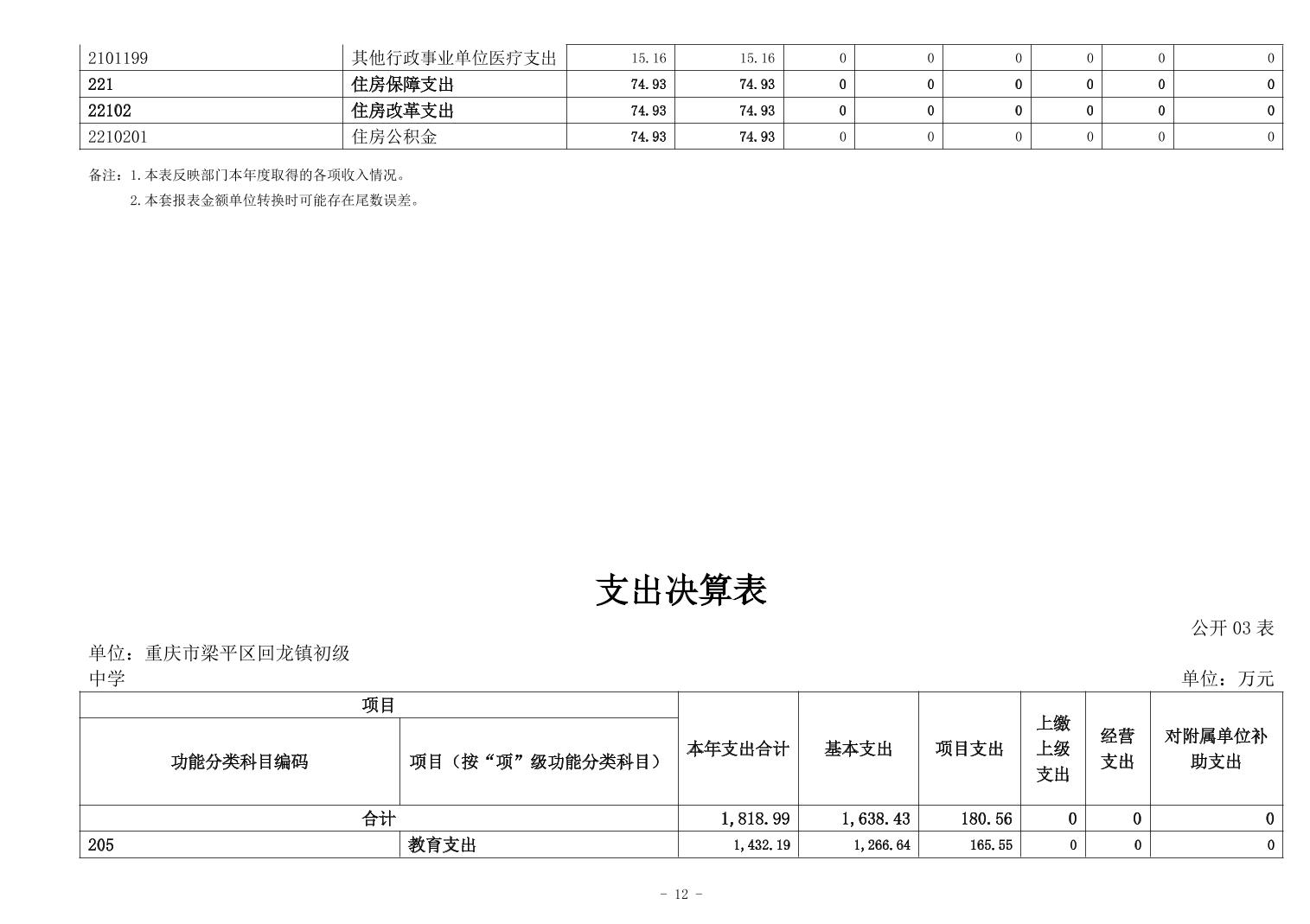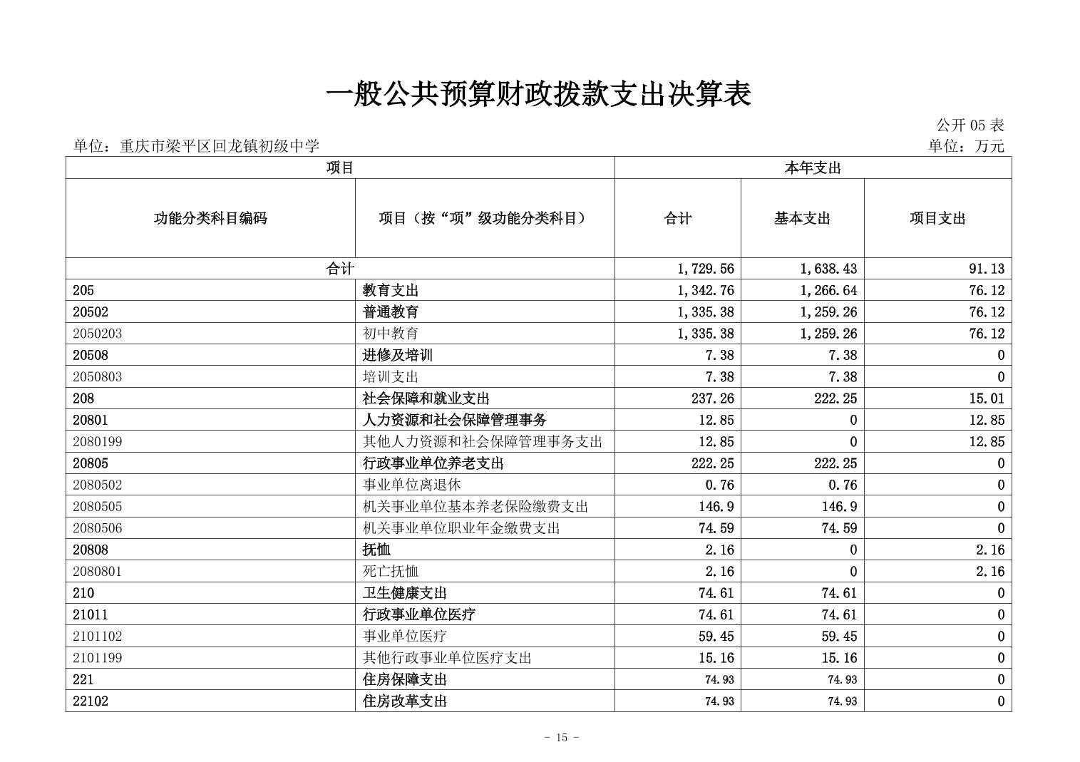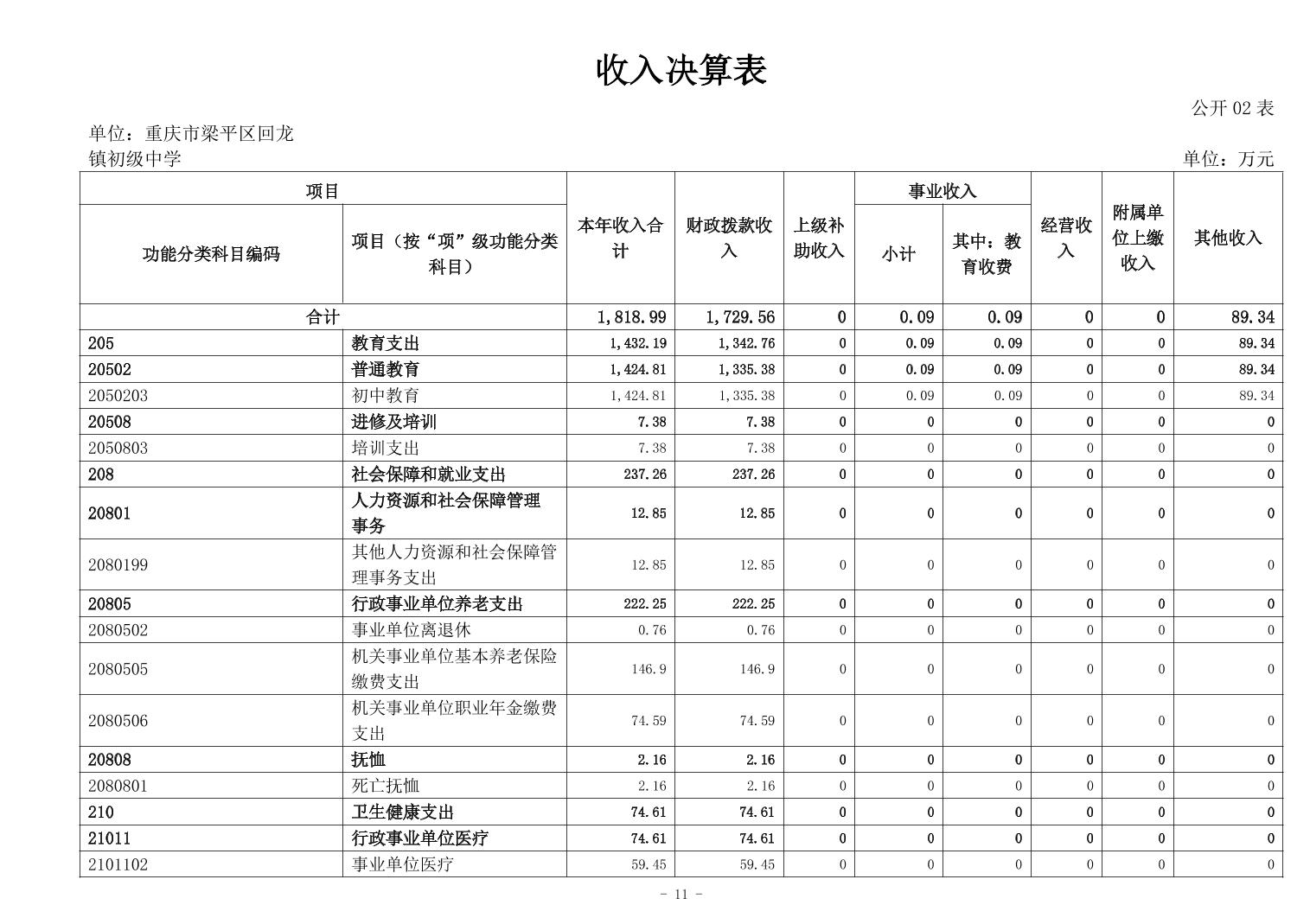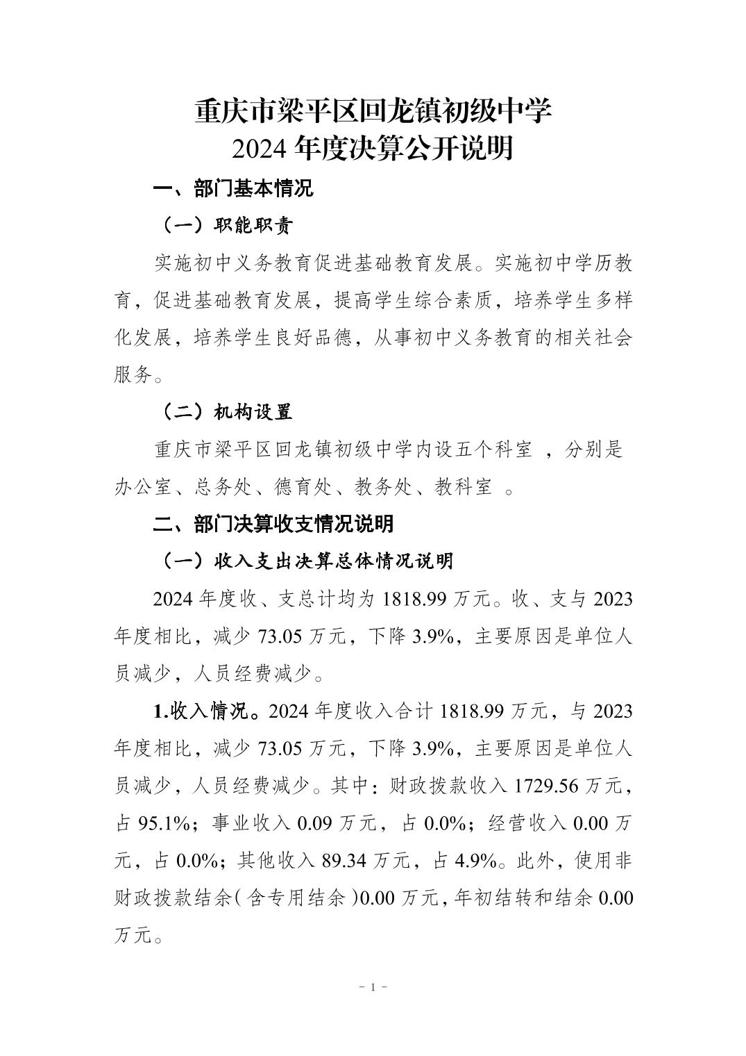 | 標題 | 重慶市梁平區回龍鎮初級中學2024年度決算公開說明 |