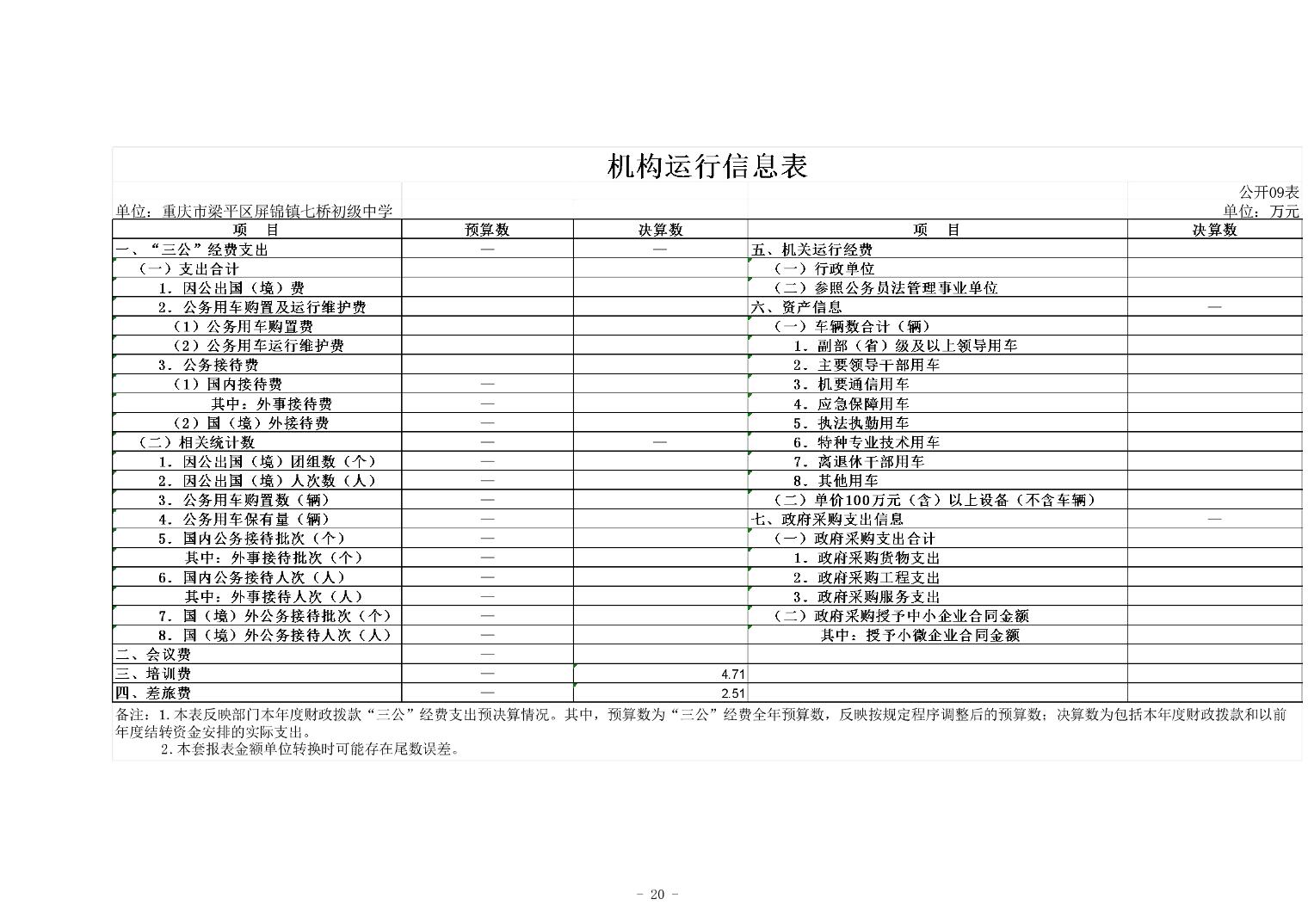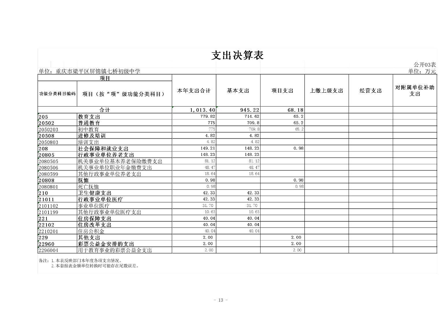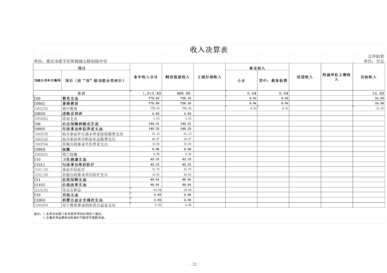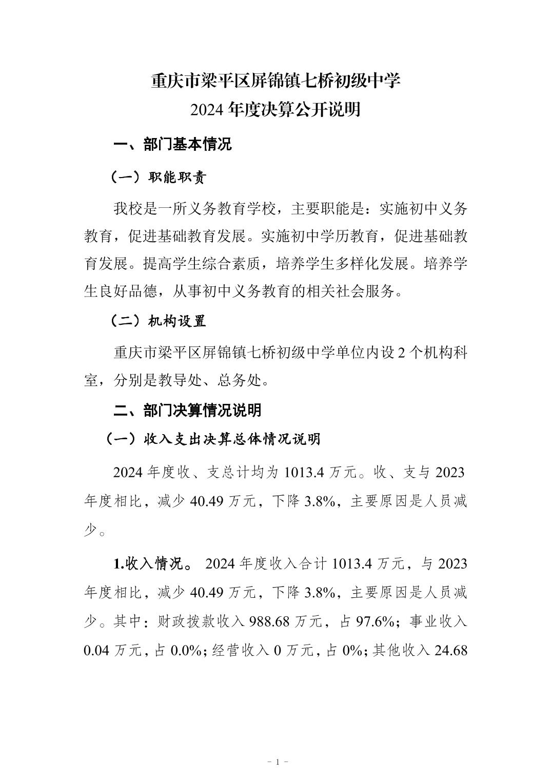 標題 重慶市梁平區屏錦鎮七橋初級中學2024年度部門決算報告