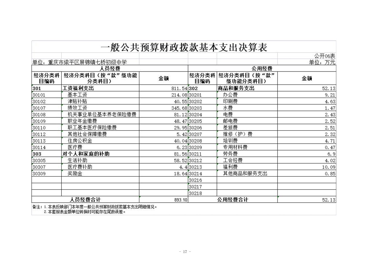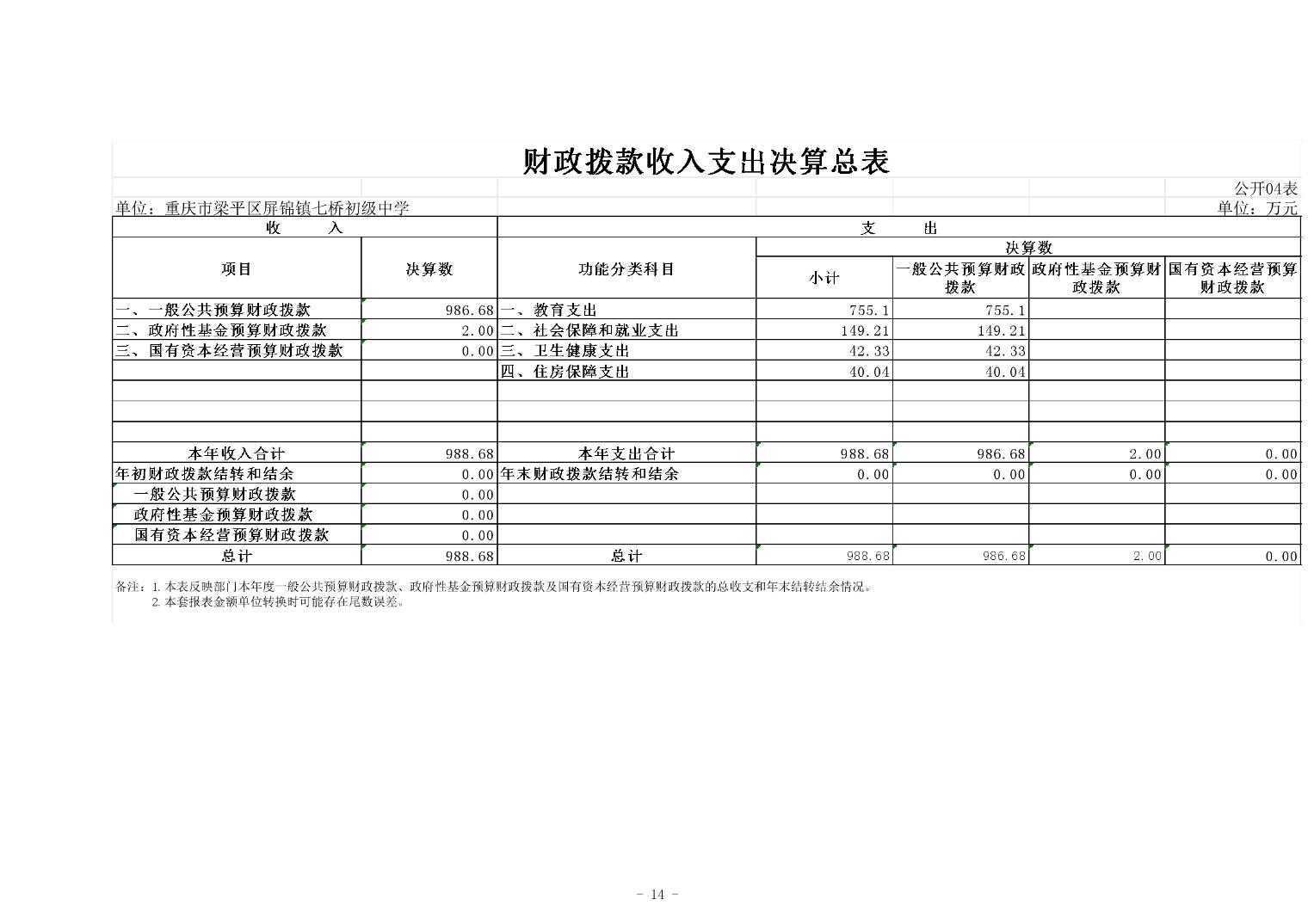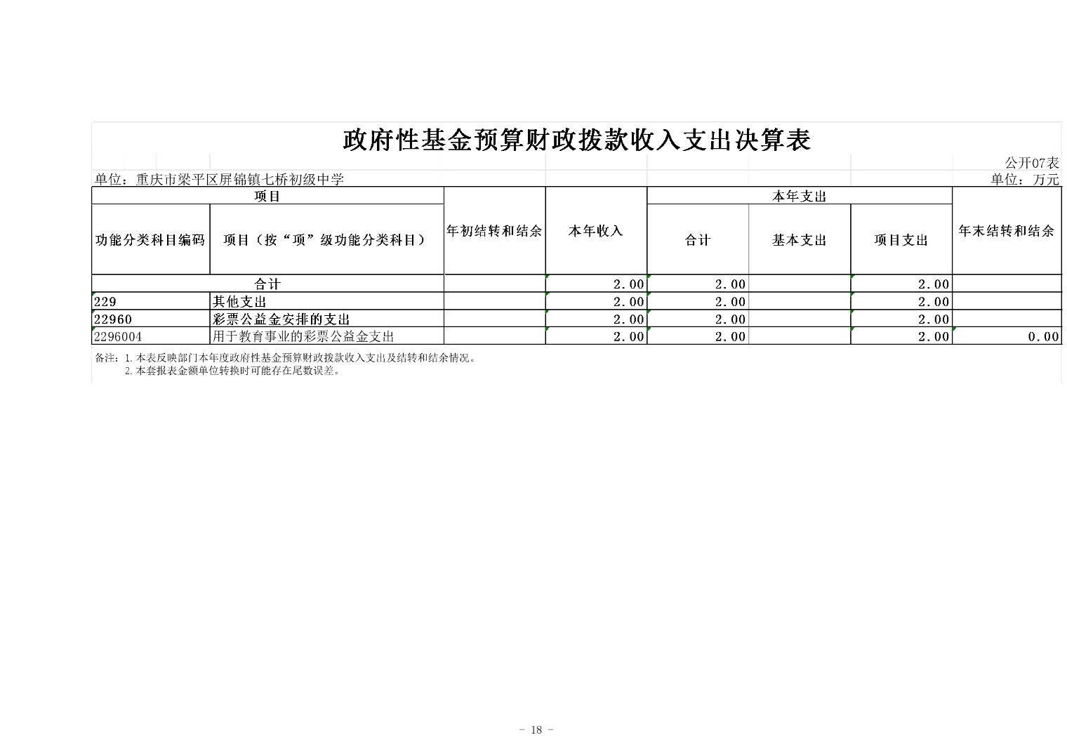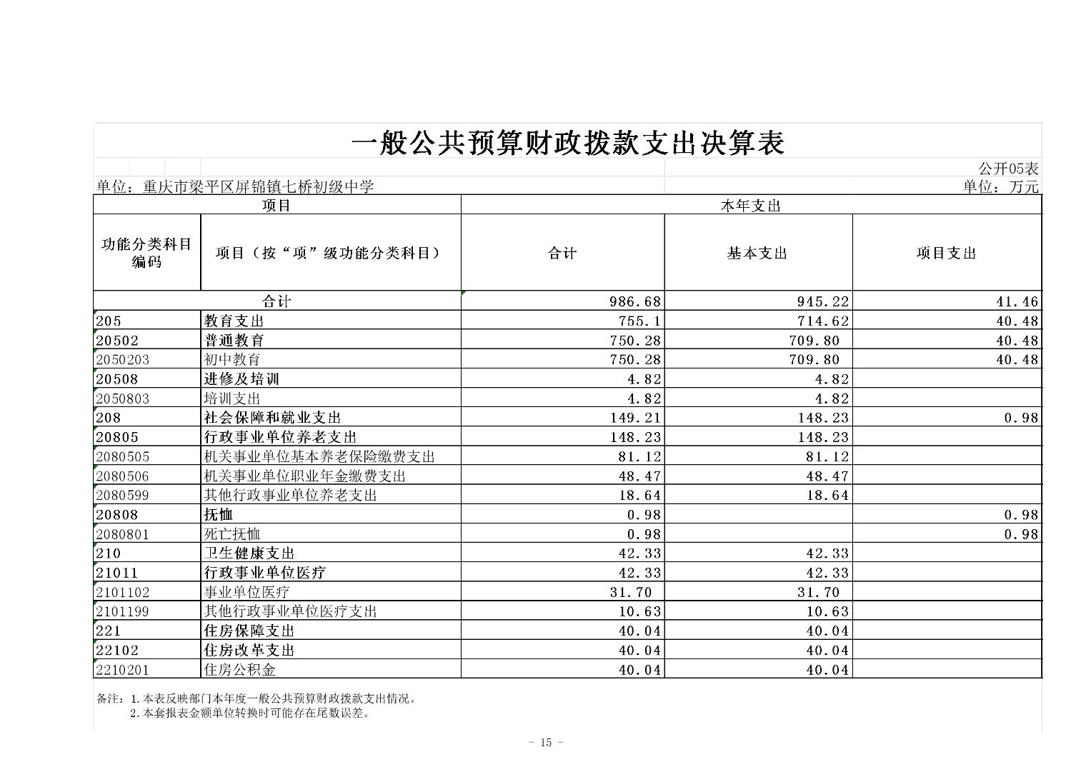 標題 重慶市梁平區屏錦鎮七橋初級中學2024年度部門決算報告
