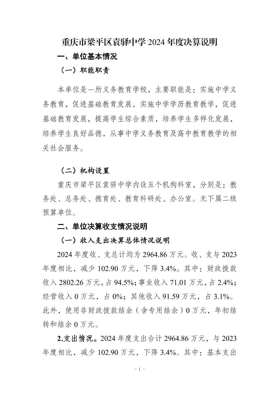 | 標題 | 重慶市梁平區袁驛中學2024年度決算公開說明 |