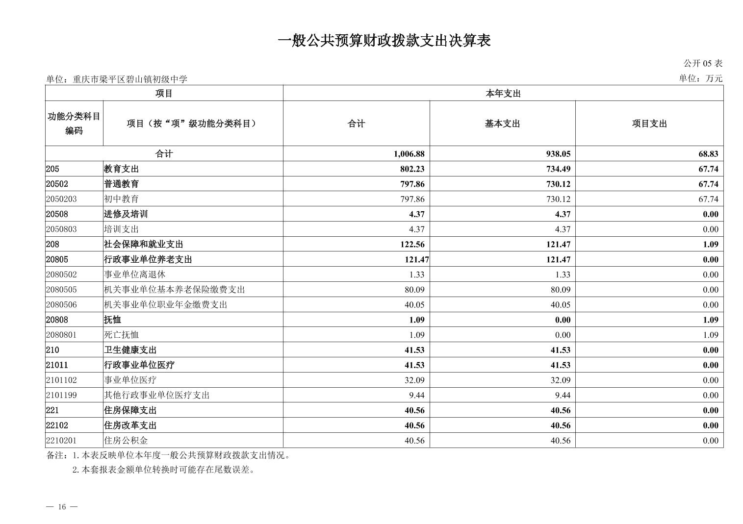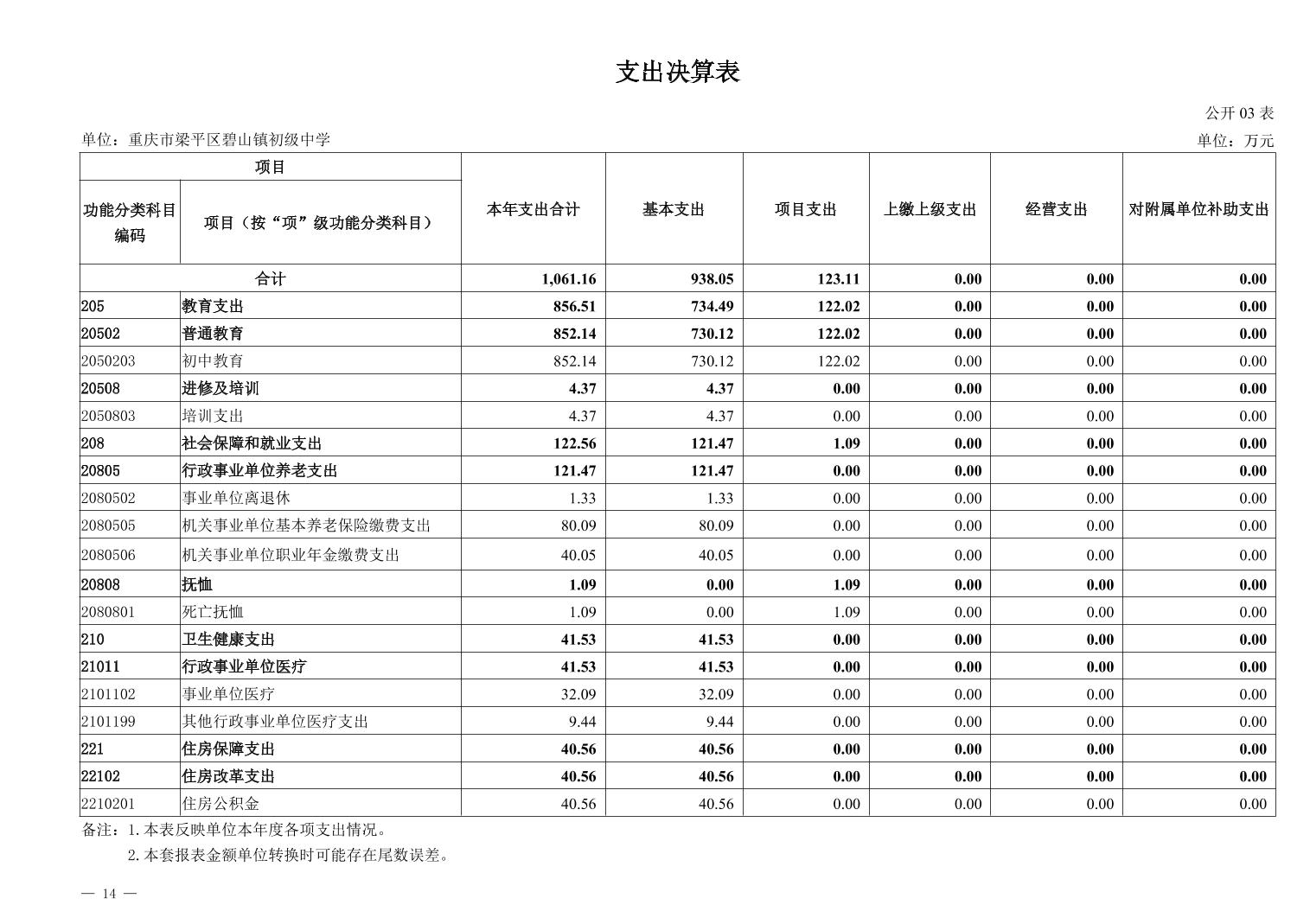 標題 重慶市梁平區碧山鎮初級中學2024年度決算公開說明
