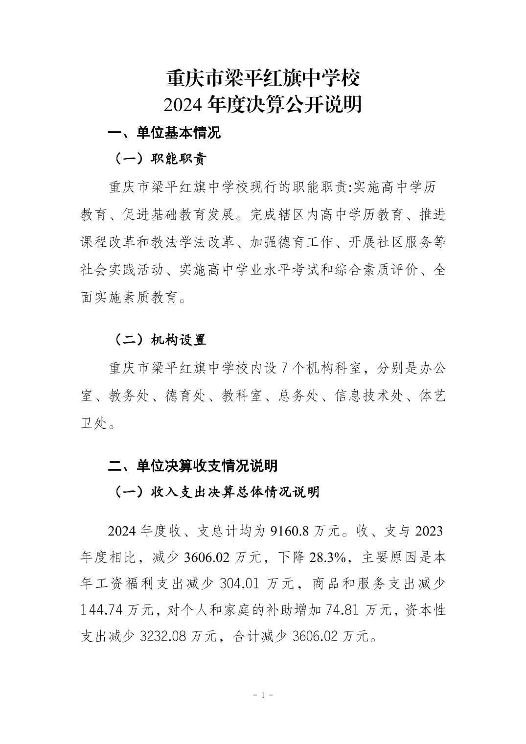 | 標題 | 重慶市梁平紅旗中學校2024年度決算公開說明 |