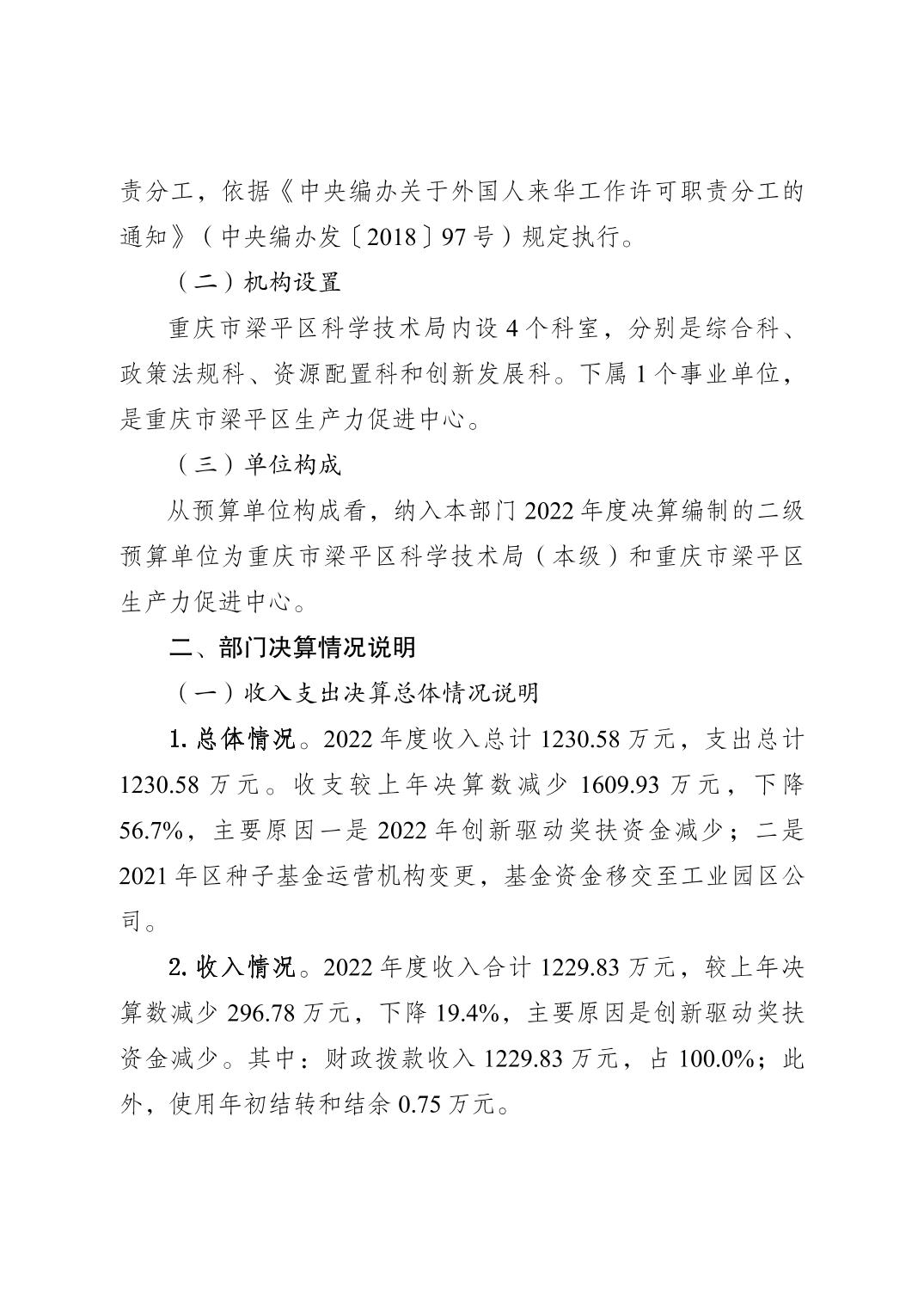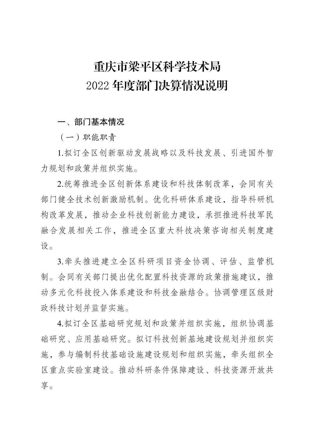 | 標題 | 重慶市梁平區科學技術局2022年度部門決算情況說明 |