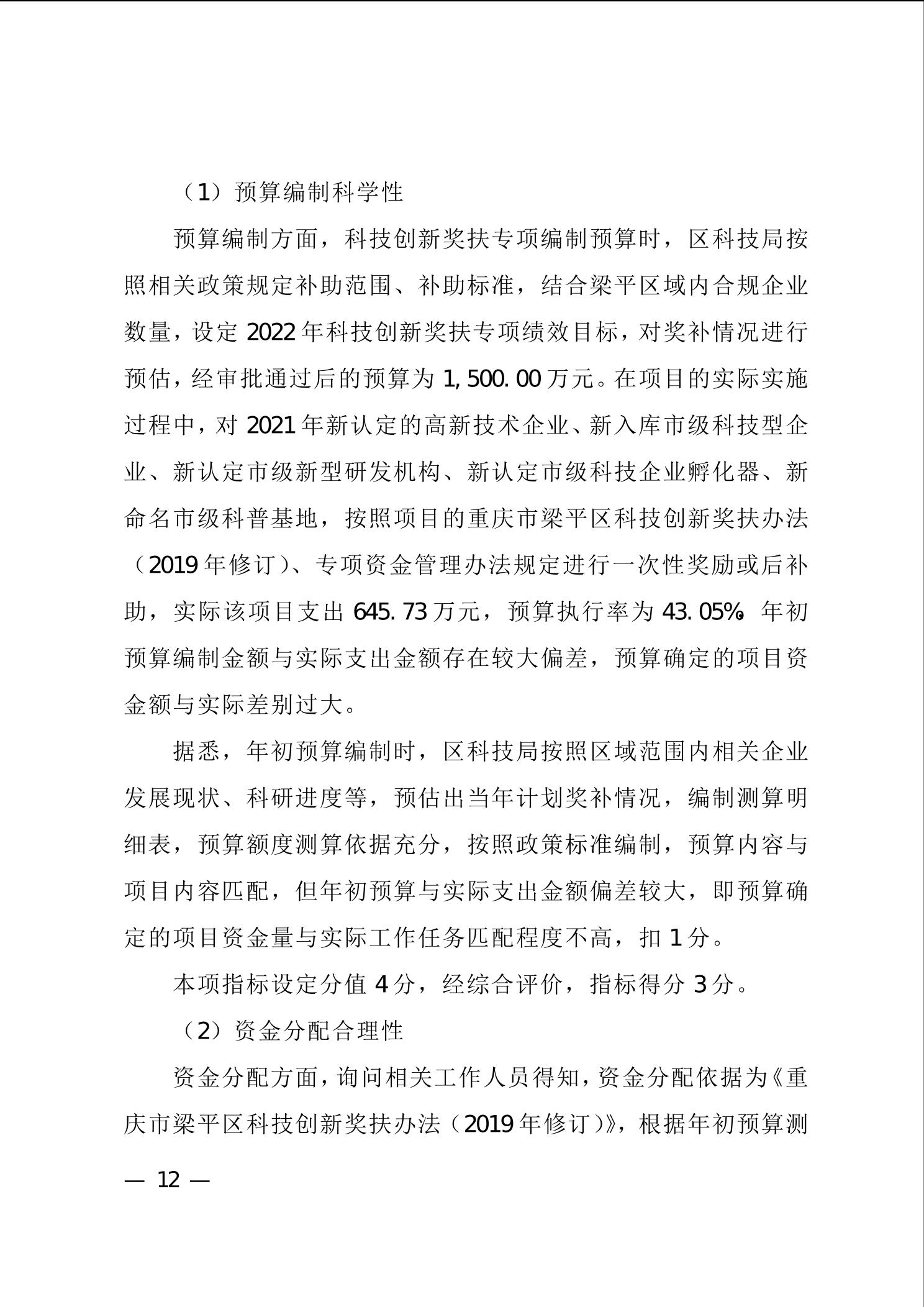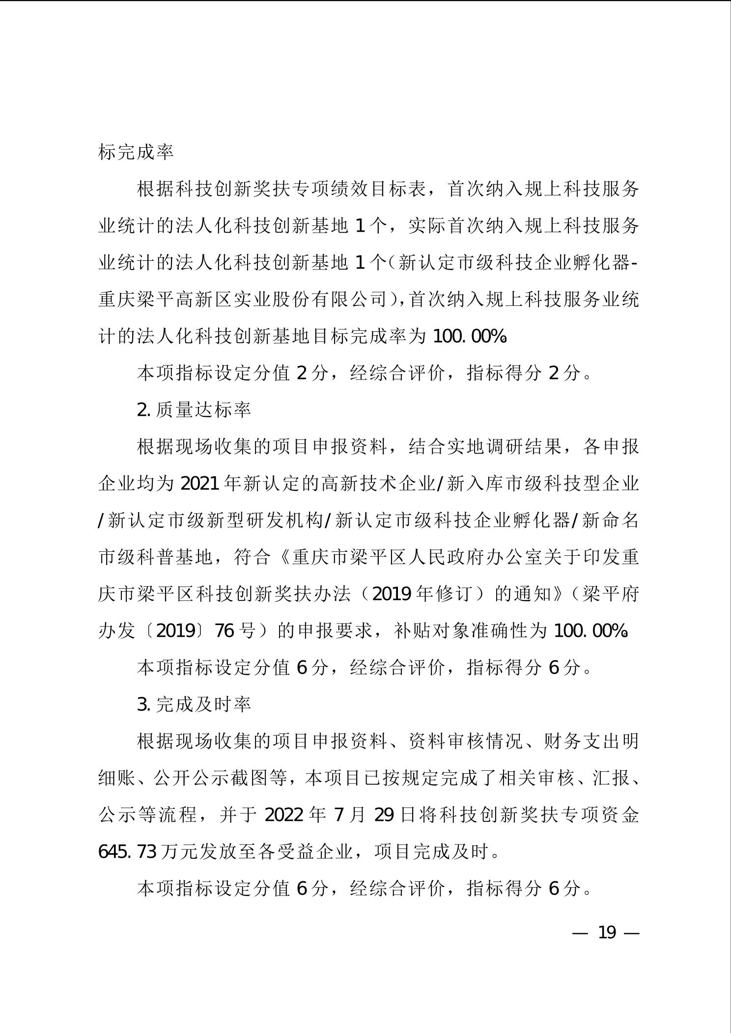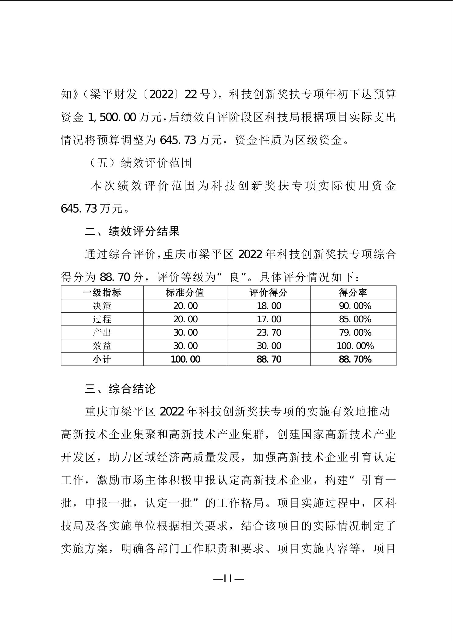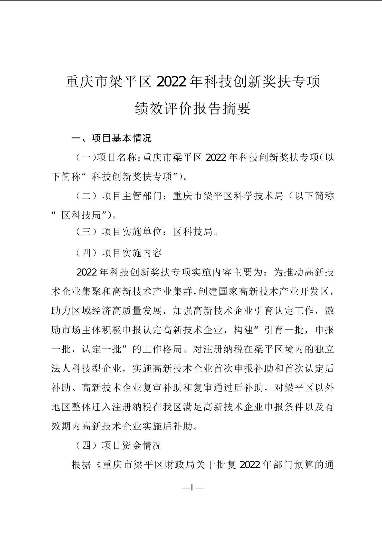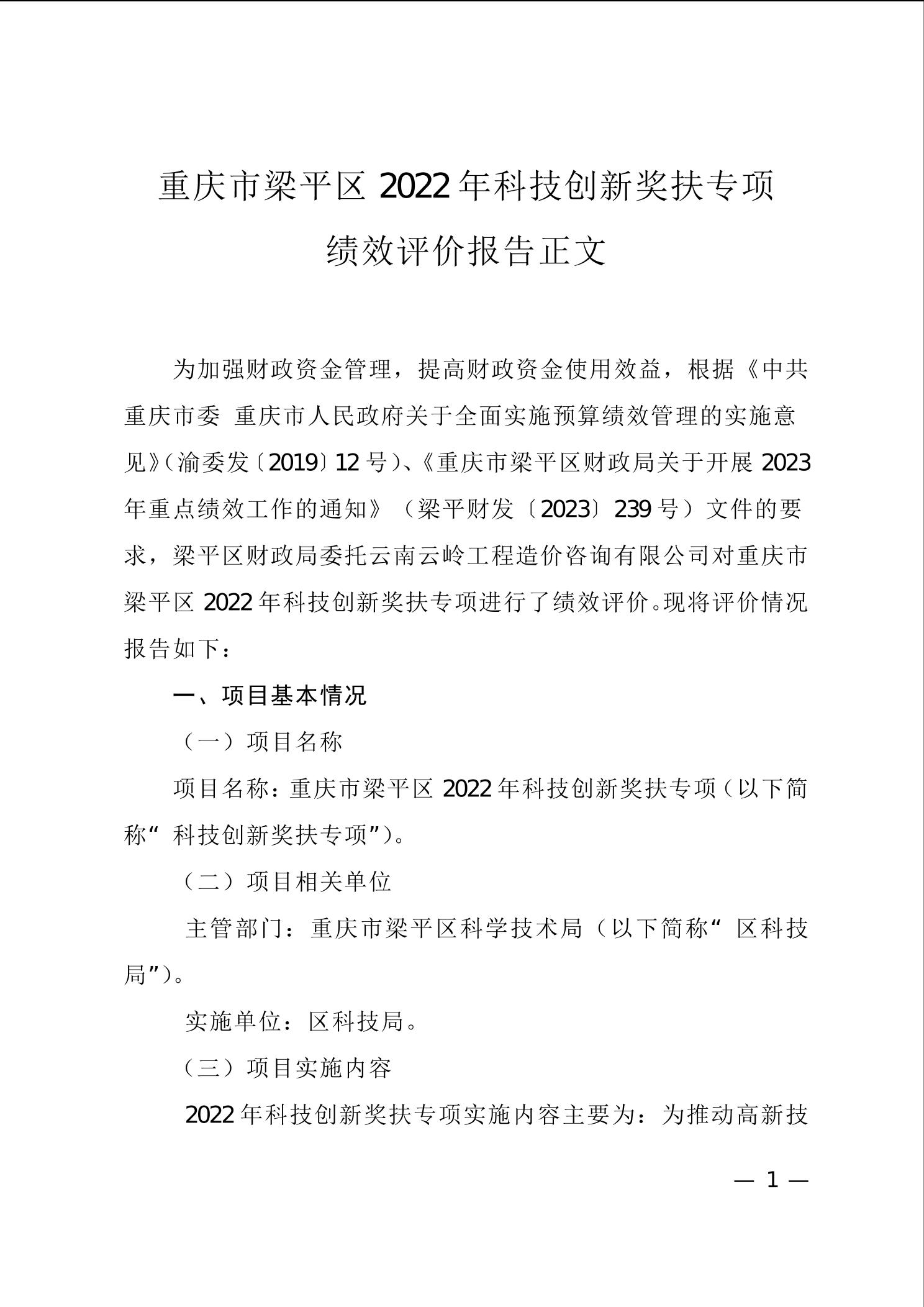 | 標題 | 重慶市梁平區2022年科技創新獎扶專項績效評價報告 |