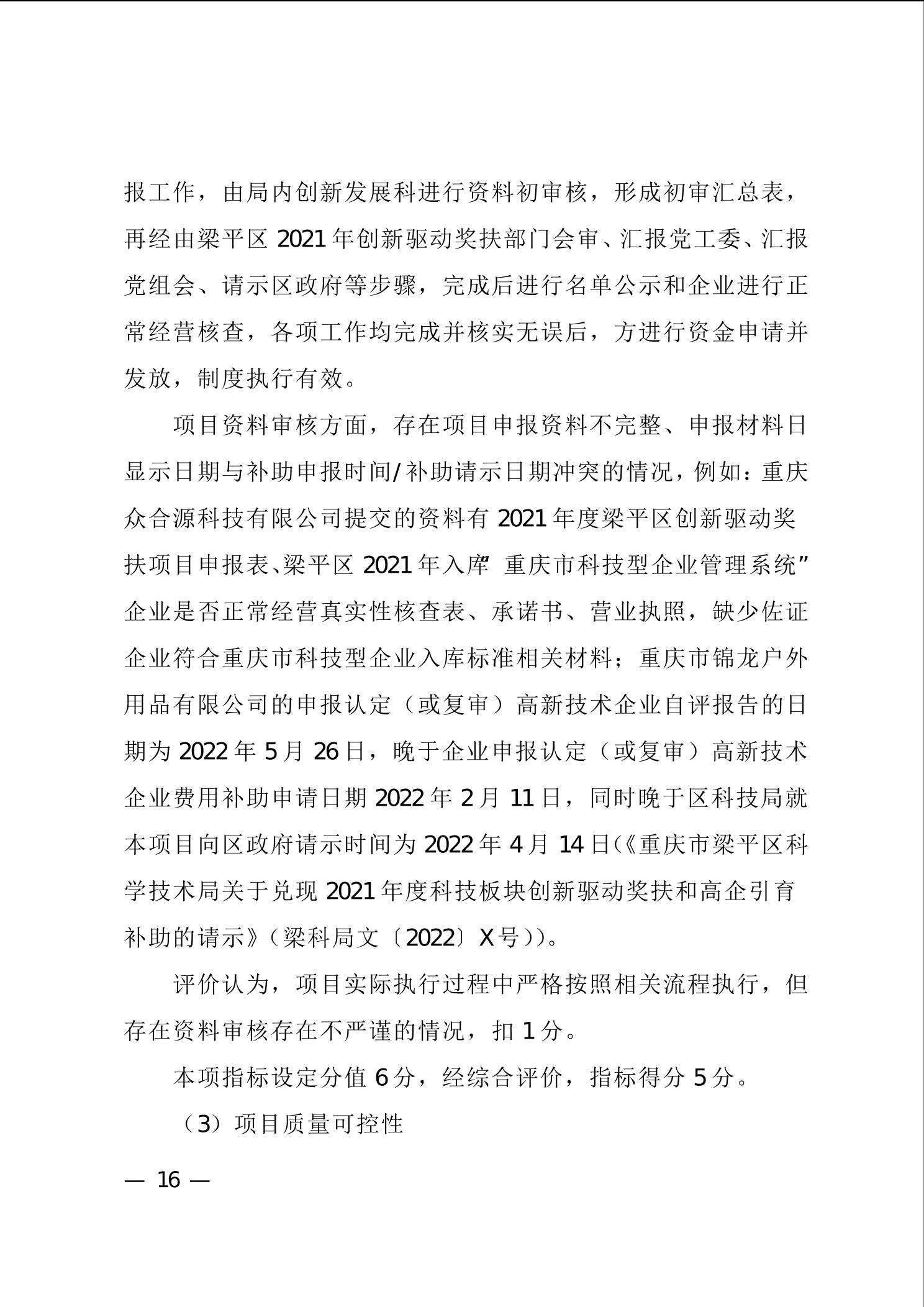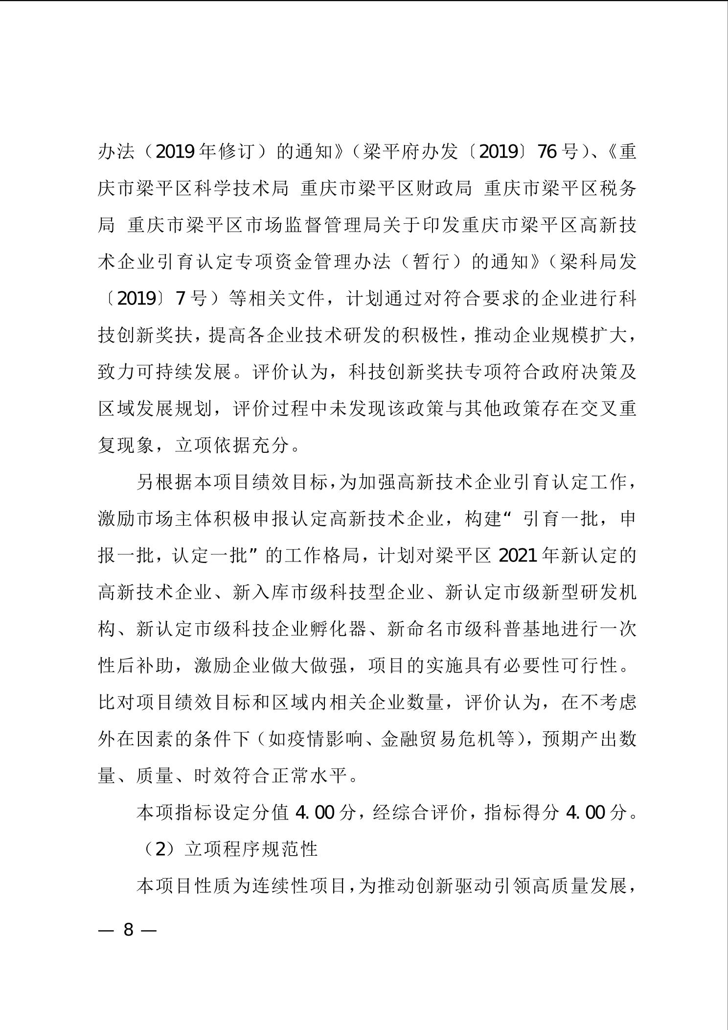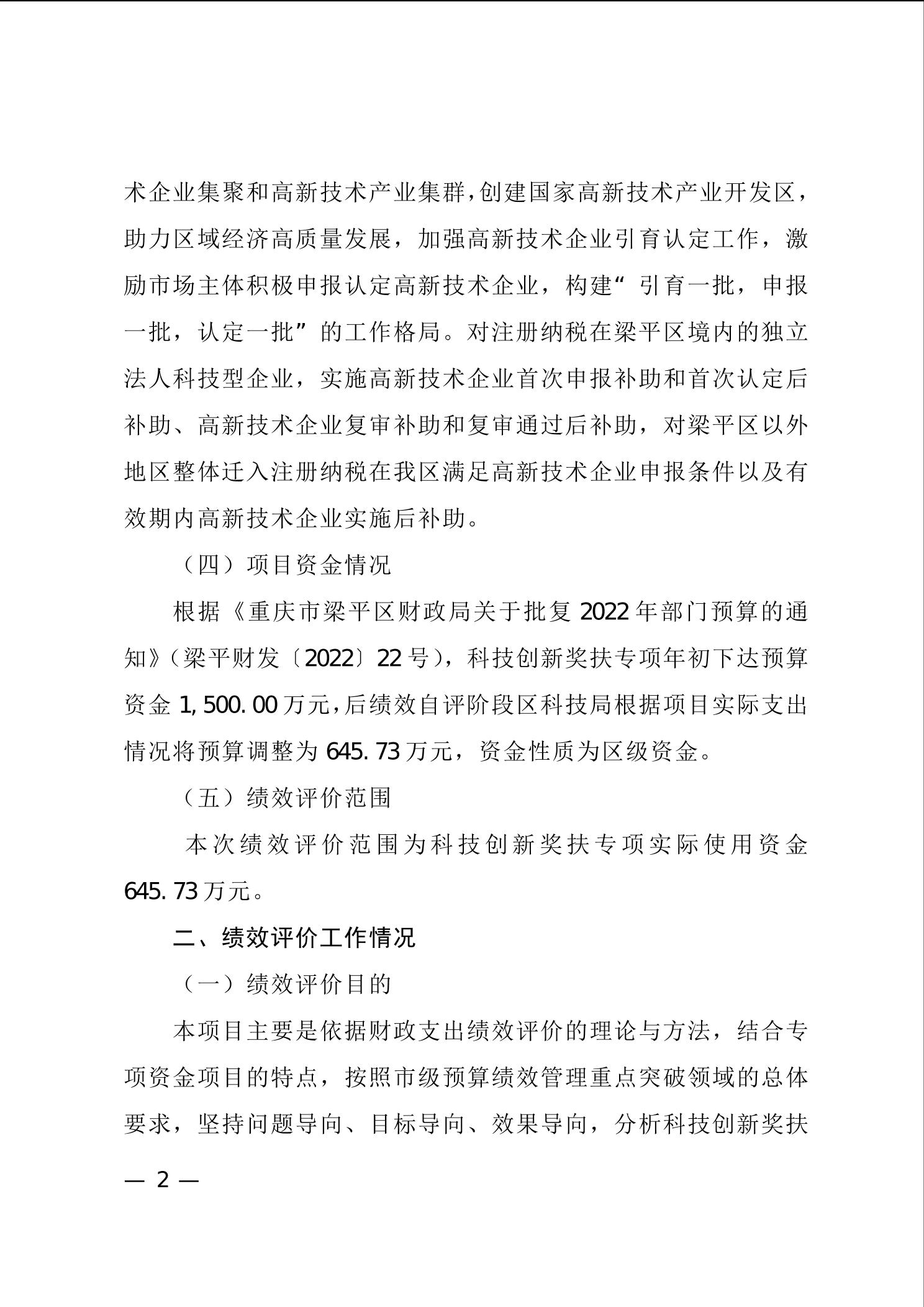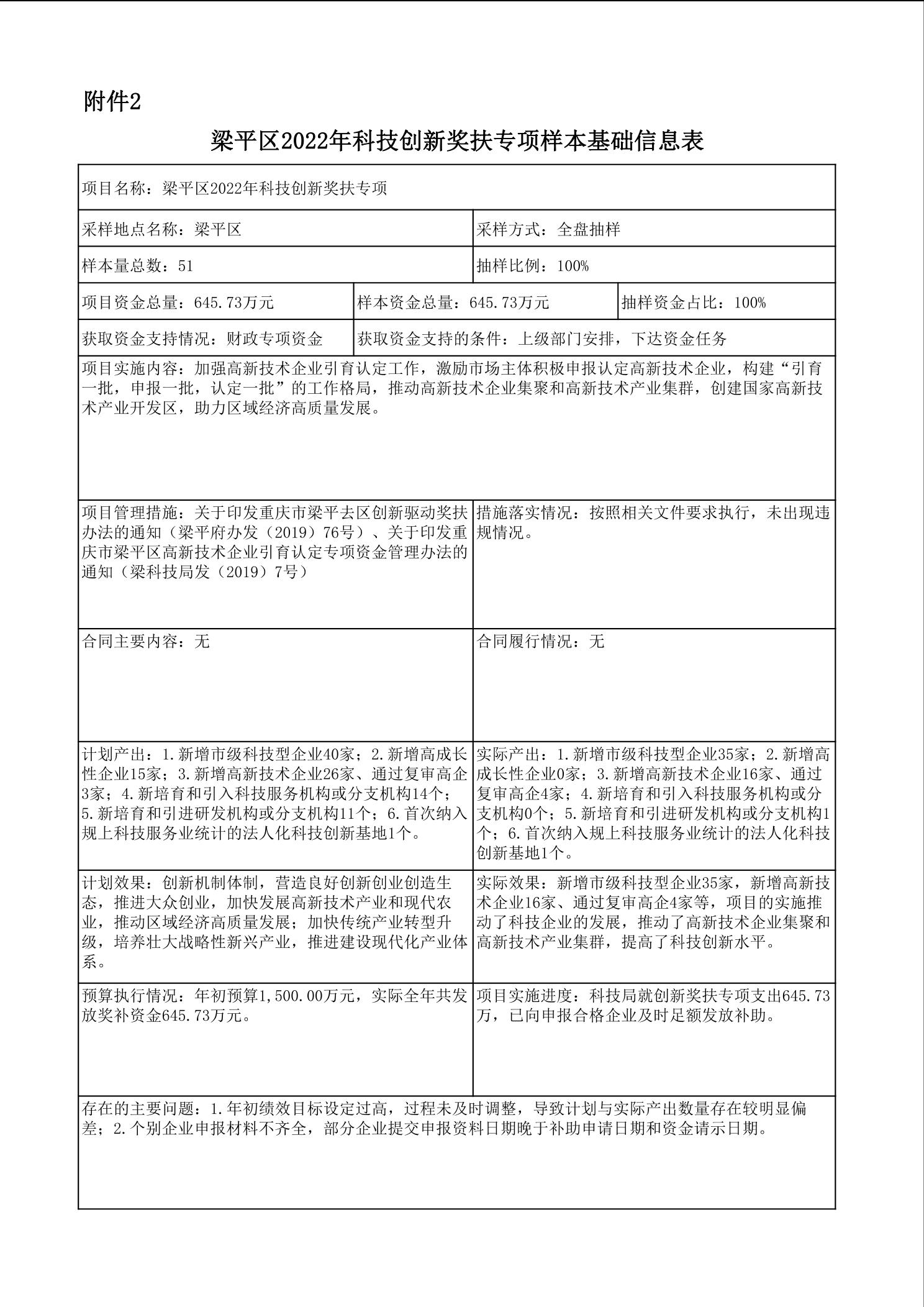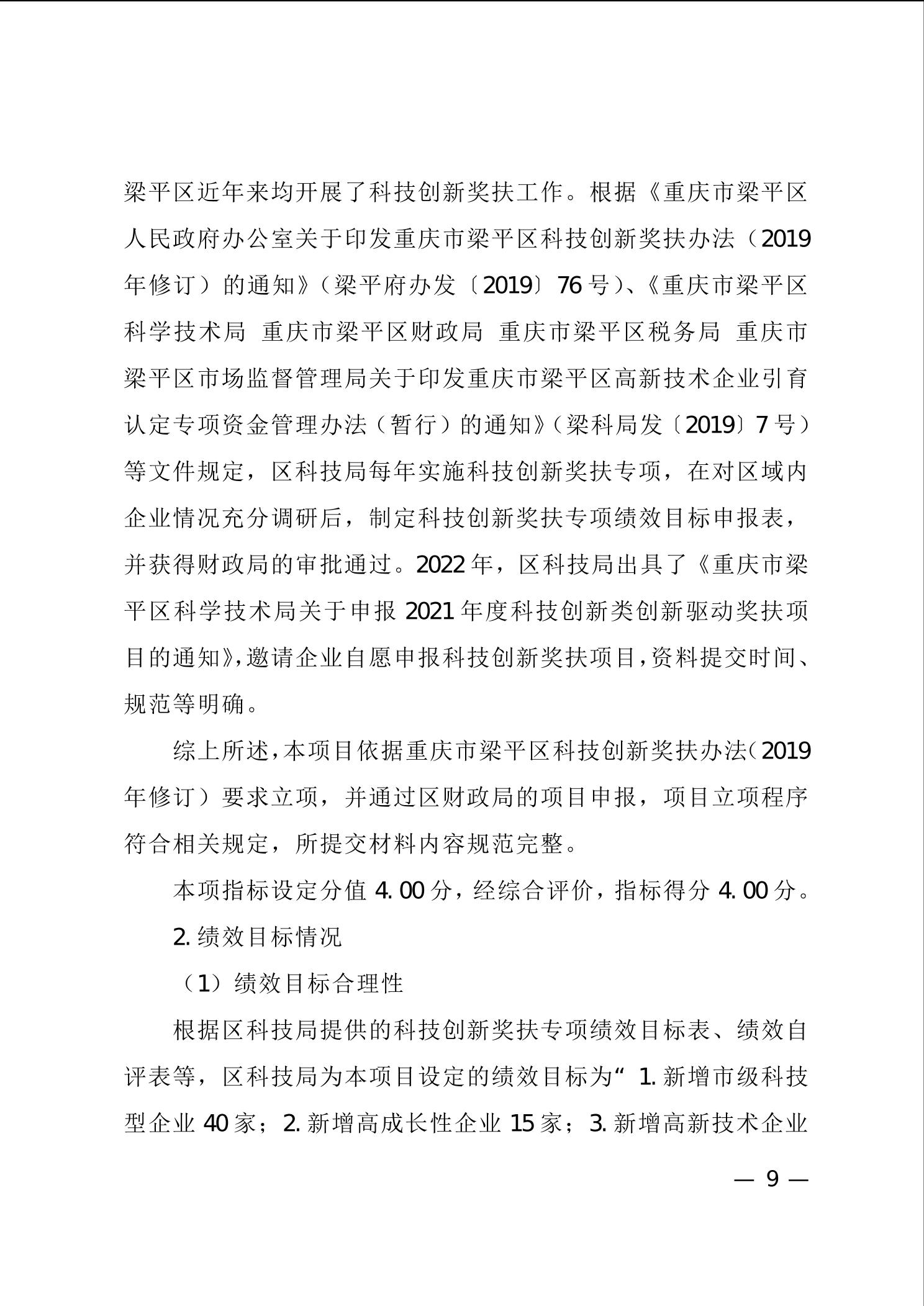 | 標題 | 重慶市梁平區2022年科技創新獎扶專項績效評價報告 |