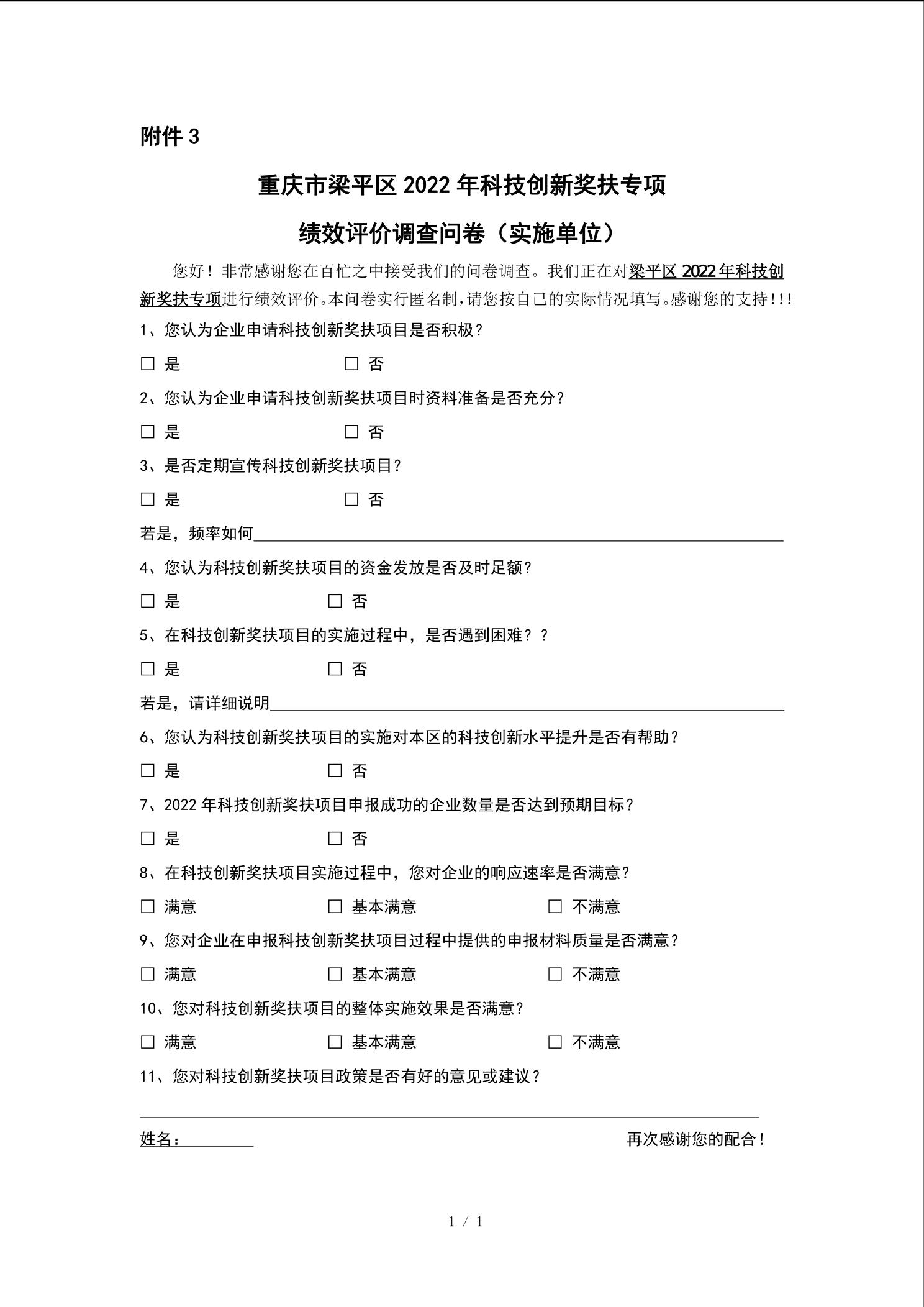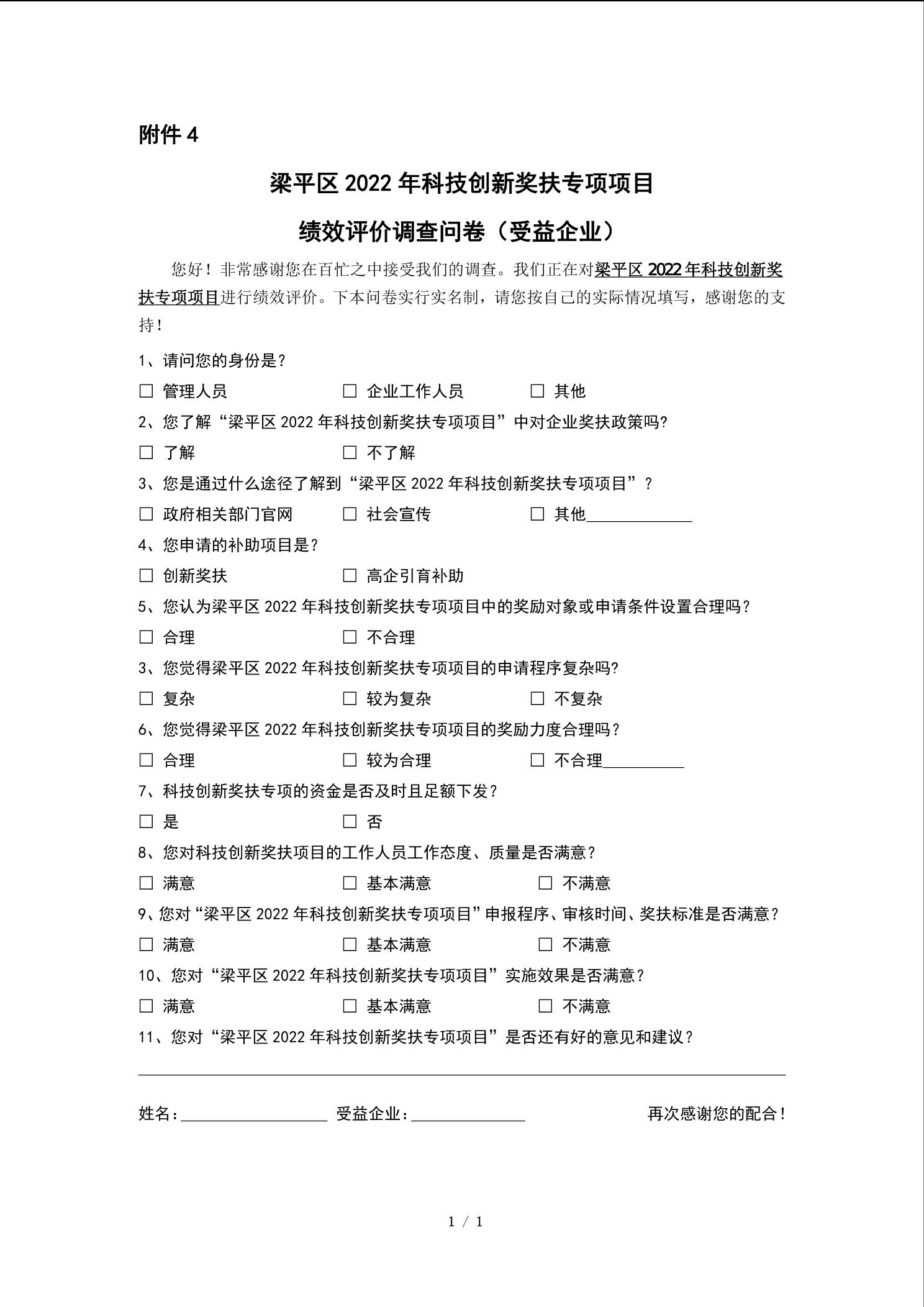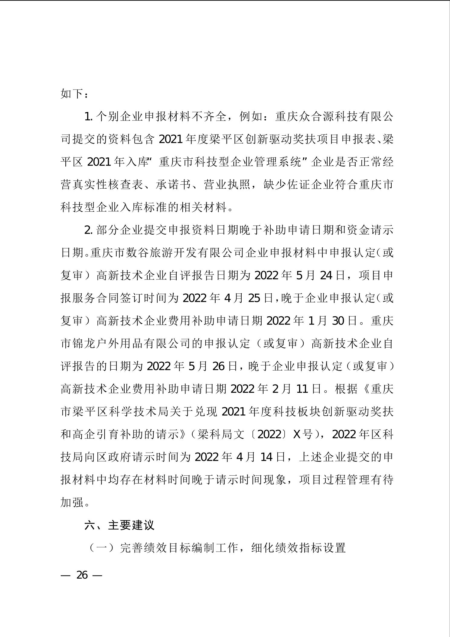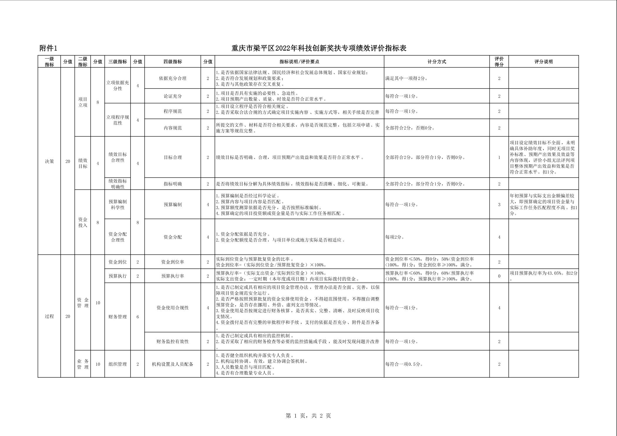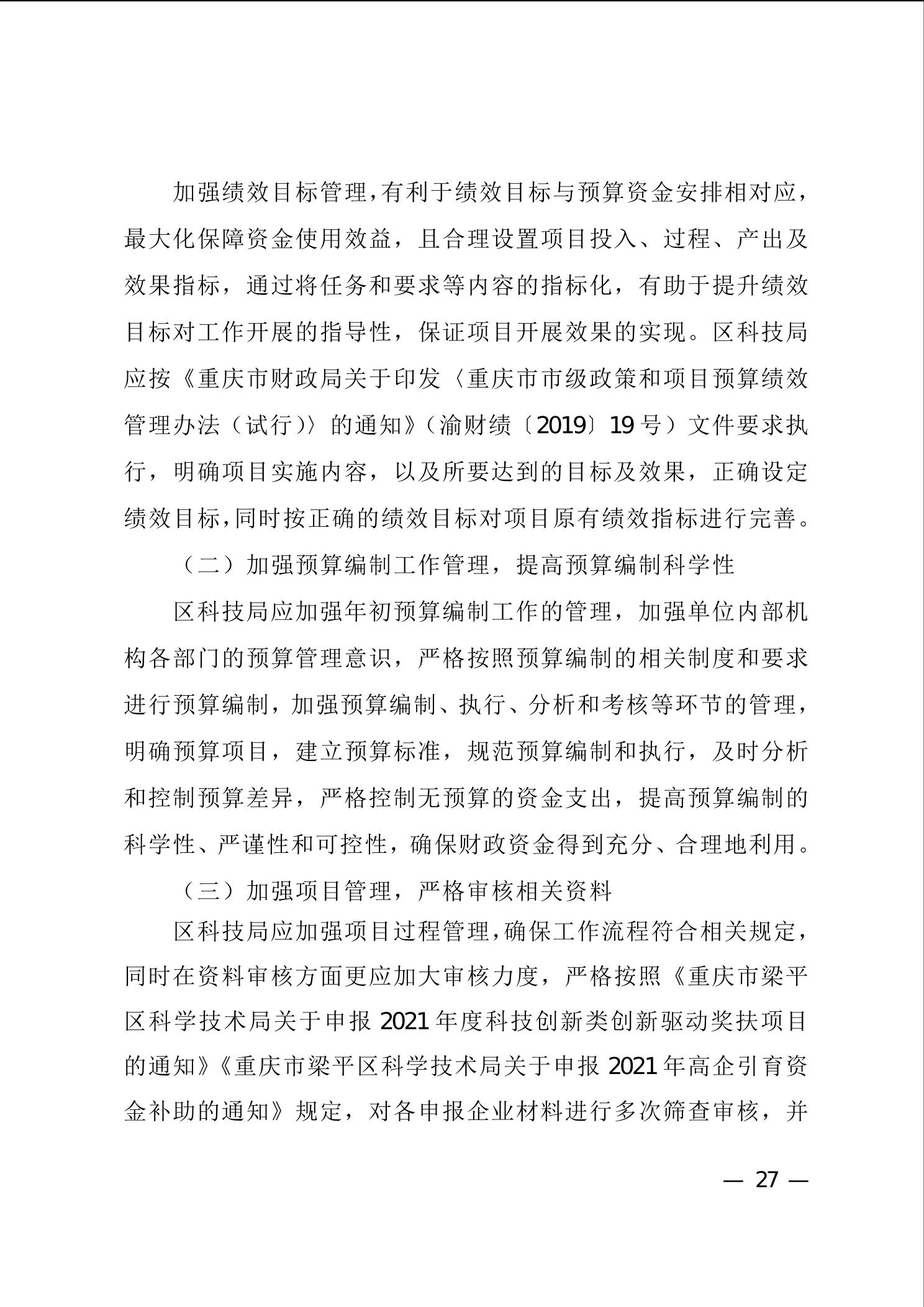 | 標題 | 重慶市梁平區2022年科技創新獎扶專項績效評價報告 |