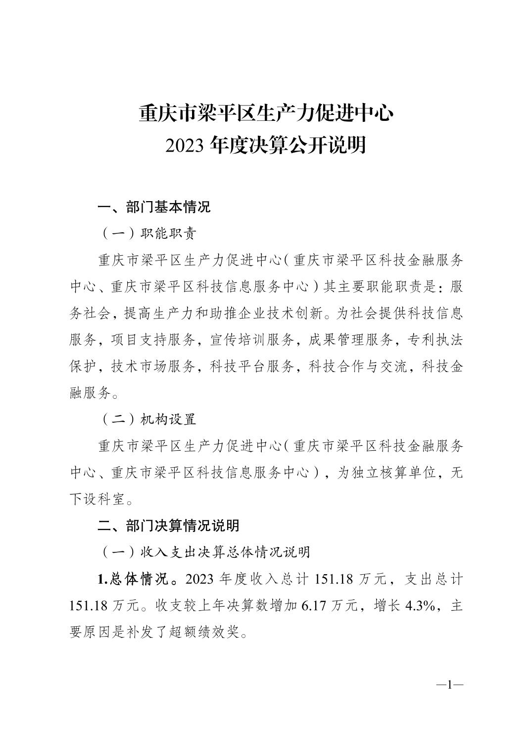 | 標題 | 重慶市梁平區生產力促進中心2023年度決算公開說明 |